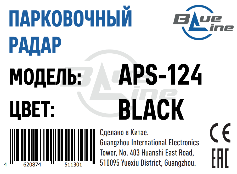 Парковочный радар Blue Line APS-124 с 4мя черными датчиками информация: