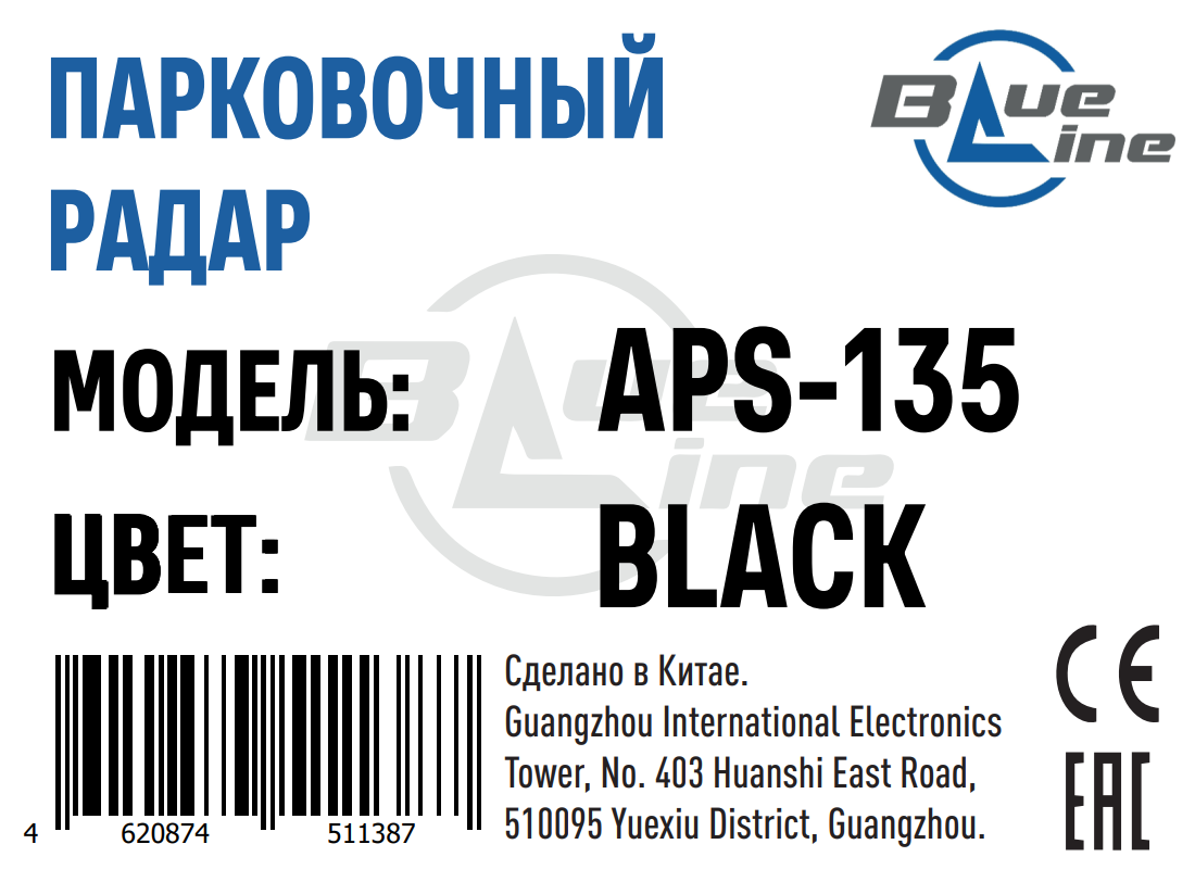 Парковочный радар Blue Line APS-135 с 4мя черными датчиками информация: