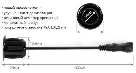 | Особенности | активация задней передачей / встроенный динамик / запоминание выносных элементов автомобиля / окрашиваемые датчики / самодиагностика датчиков / указание направления препятствия / управление громкостью |