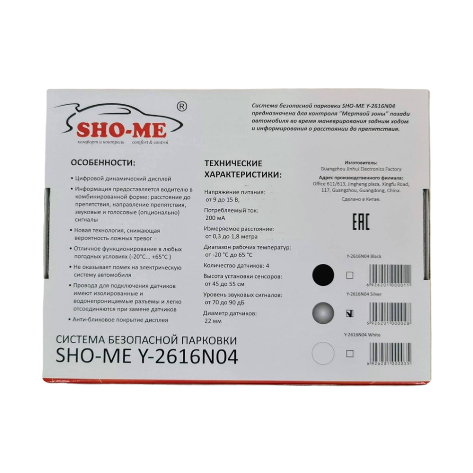 Парковочный радар Sho-Me Y-2616N04 (серебро, 4 датчика 22 мм) информация: