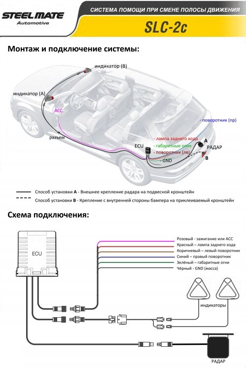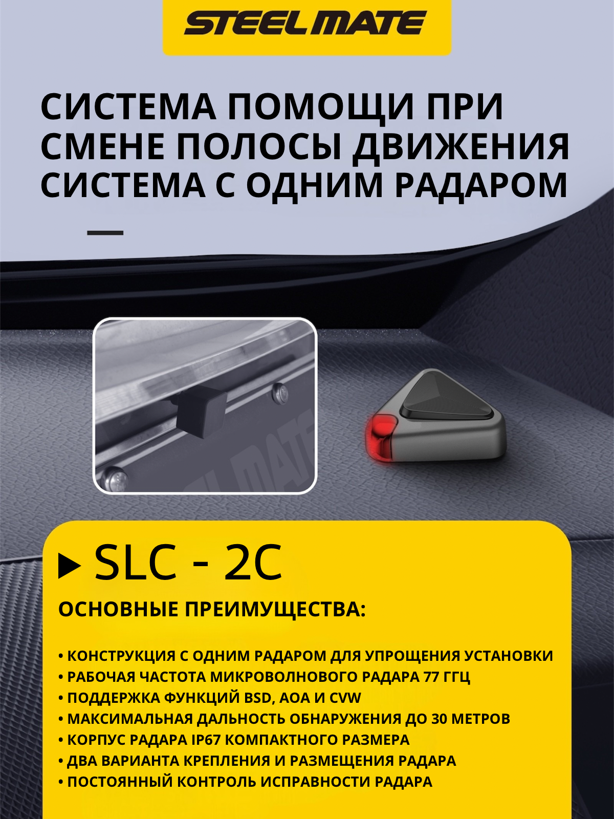 Система контроля слепых зон SteelMate SLC-2C помощи при смене полосы (BSD, AOA, CVW) информация: