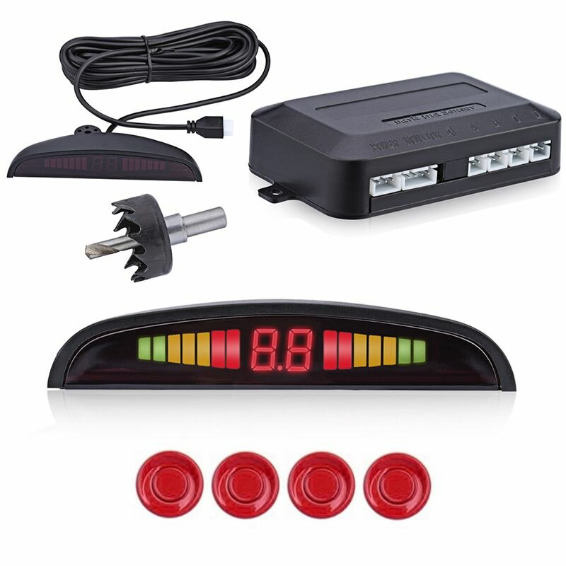 Отзывы на Парковочный радар, датчики парковки на автомобиль с дисплеем, 4 датчика, 12 B, Красный