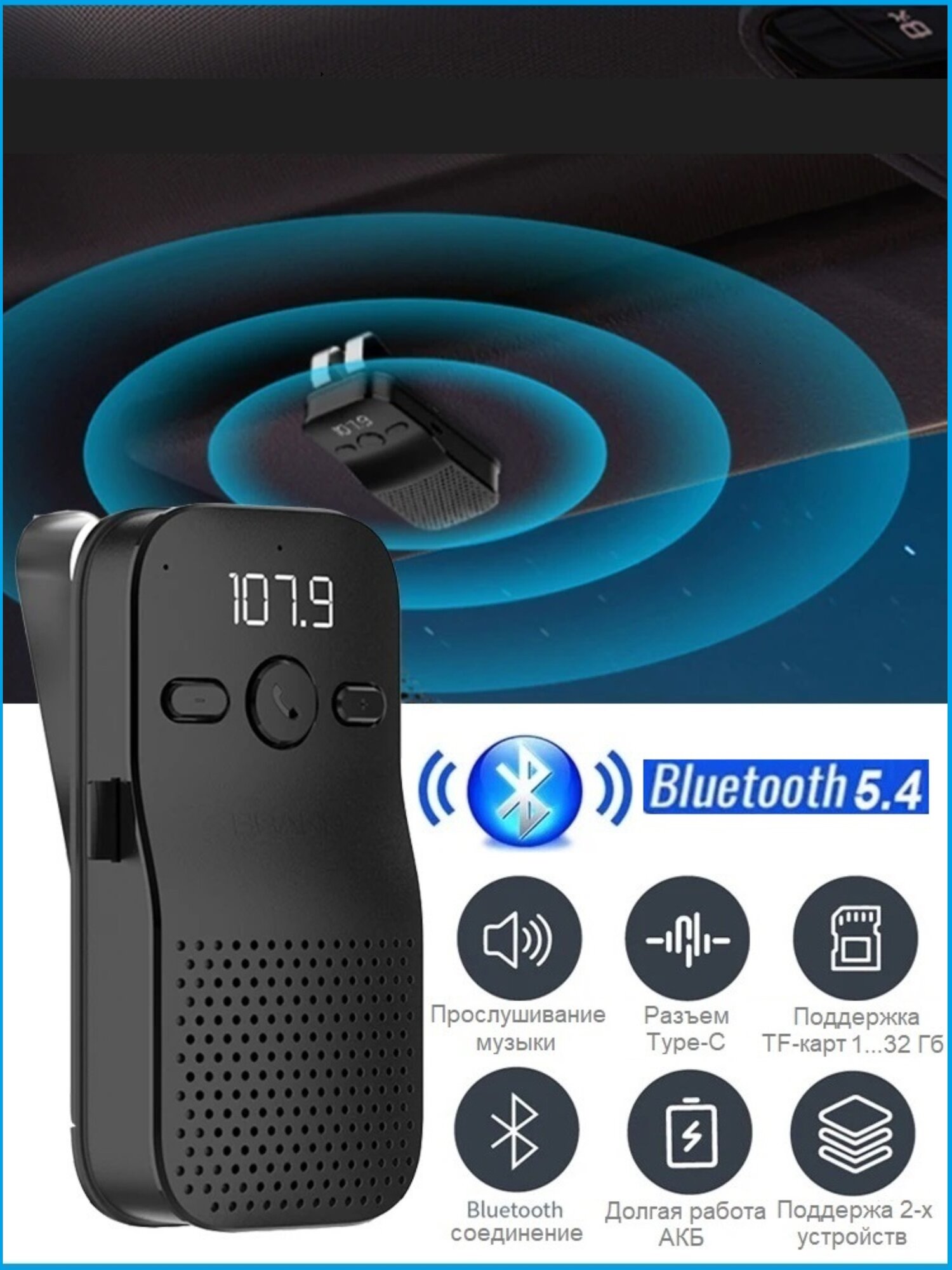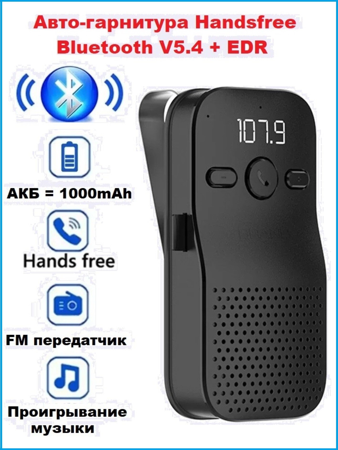 Авто-гарнитура Handsfree Bluetooth V5.4+EDR информация: