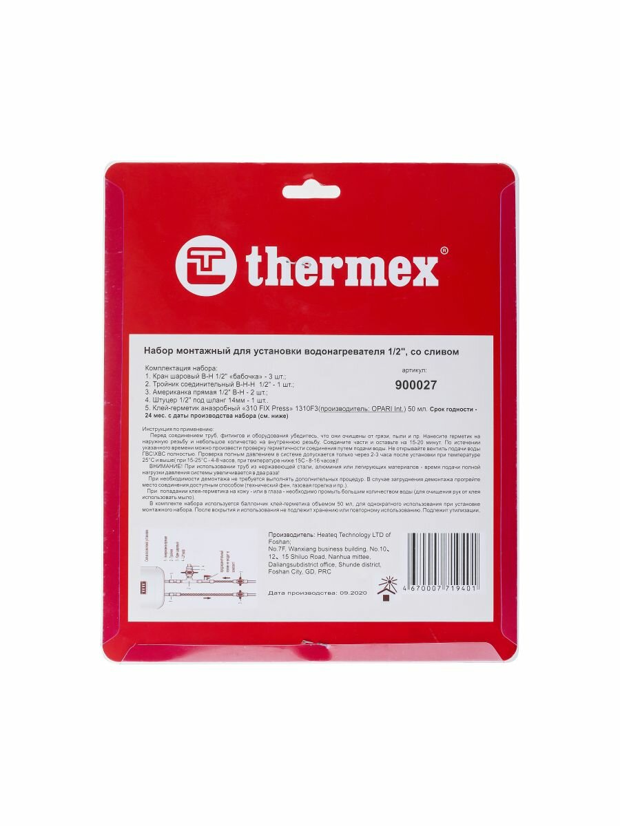 Набор монтажный THERMEX 1/2" для установки водонагревателя, со сливом, блистер информация:
