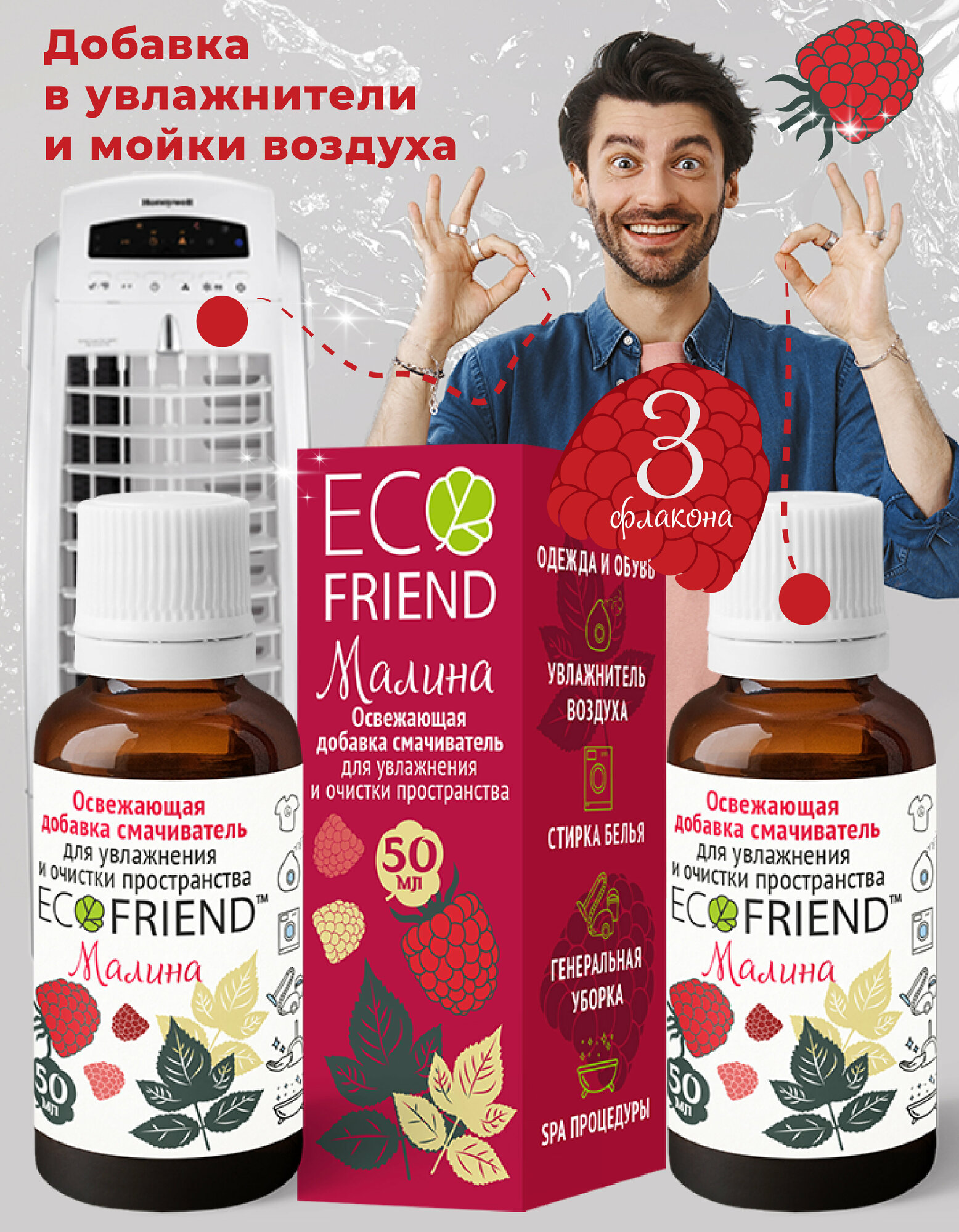 Отзывы на Ароматическая добавка в увлажнитель воздуха "Малина" набор из 3 флаконов от ECOFRIEND
