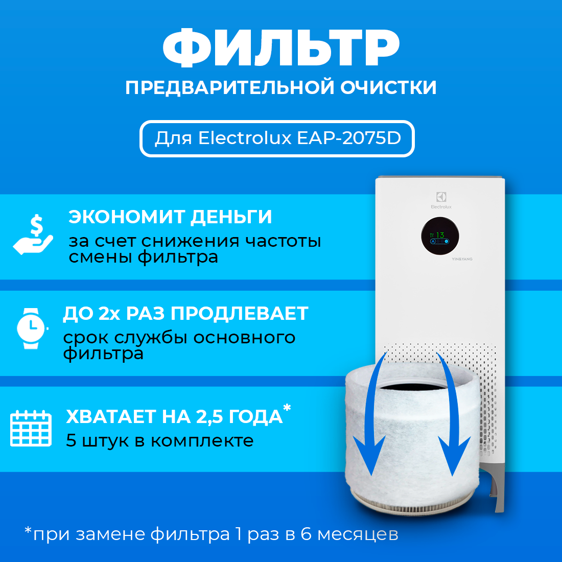 Отзывы на Фильтр для очистителя воздуха Electrolux EAP-2075D air purifire предварительной очистки.5 шт. в комплекте.