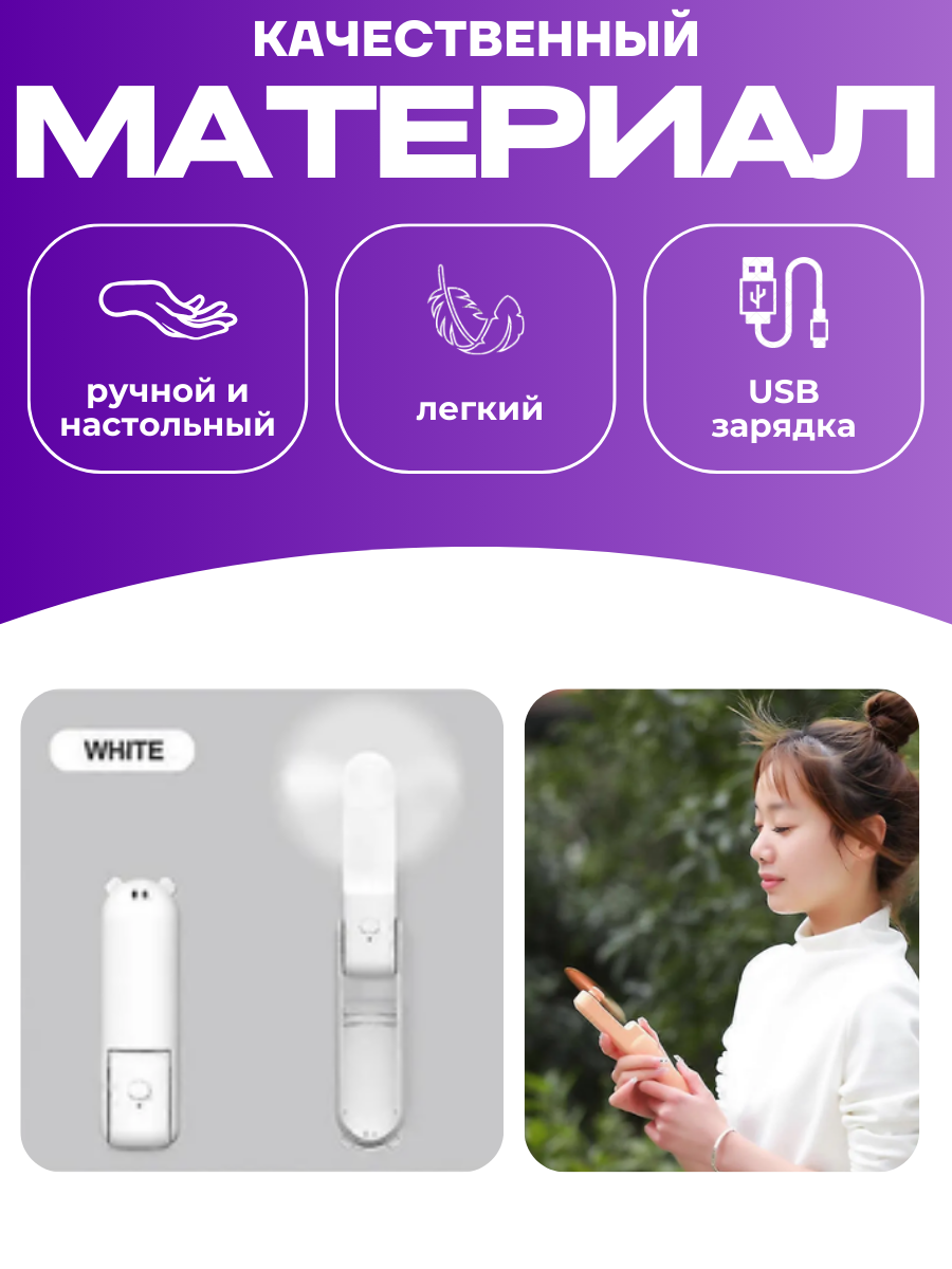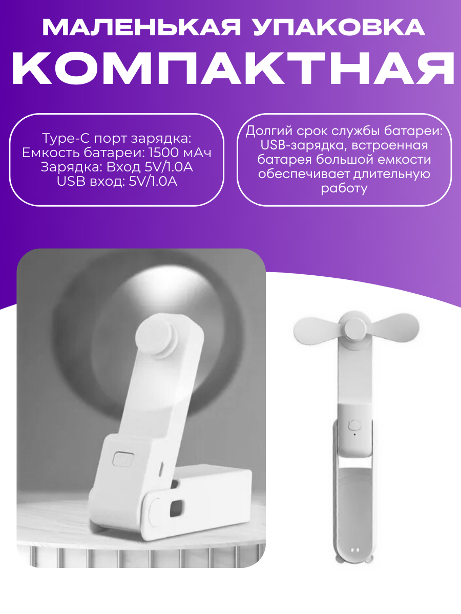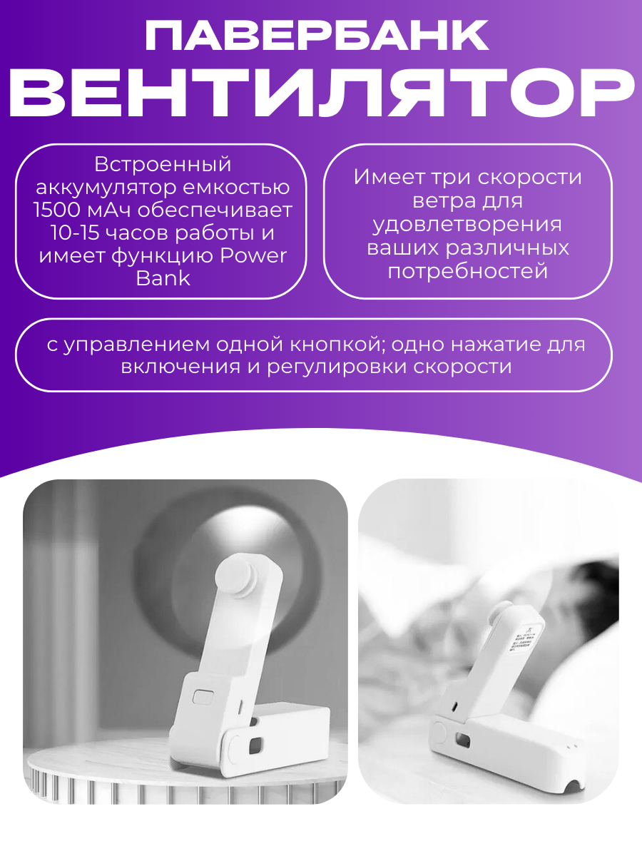 10 цен на Вентилятор аккумуляторный ручной карманный с павербанком (вентилятор powerbank) 3000mA h портативный белый