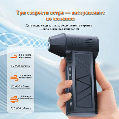 Турбовентилятор ручной мощный для мангала 110 000 оборотов в минуту, черный, 0,48 кг информация: