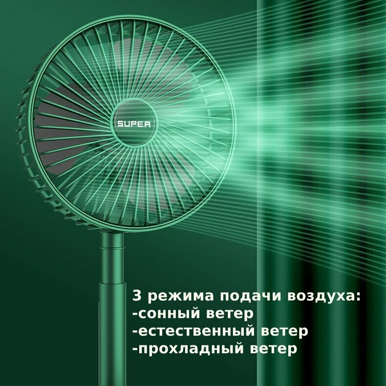 Вентилятор , настольный, 3 скорости, зеленый, с аккумулятором информация: