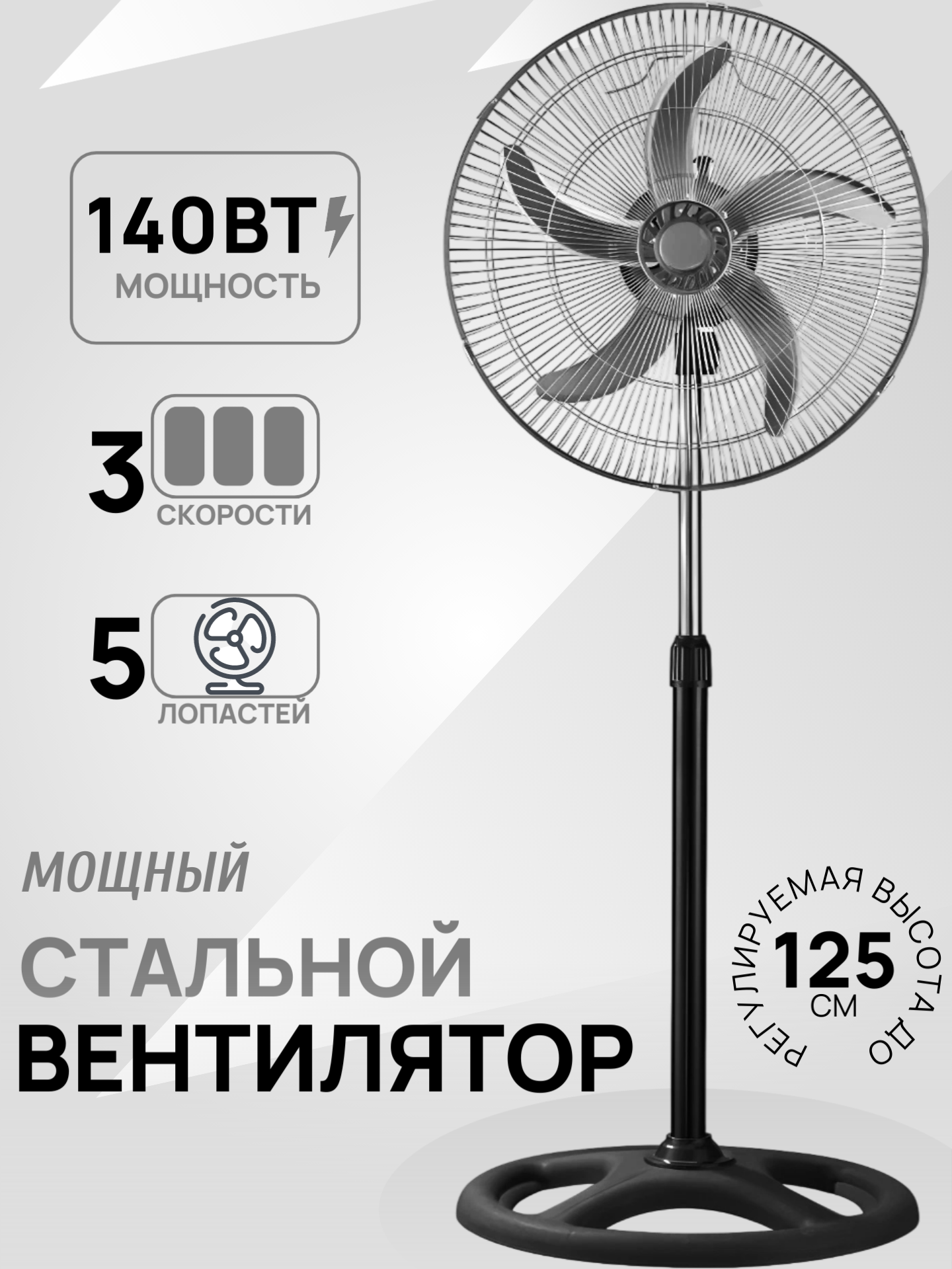 Вентилятор напольный GRANDFAR CSF-18B 140 Вт 5 лопастей информация: