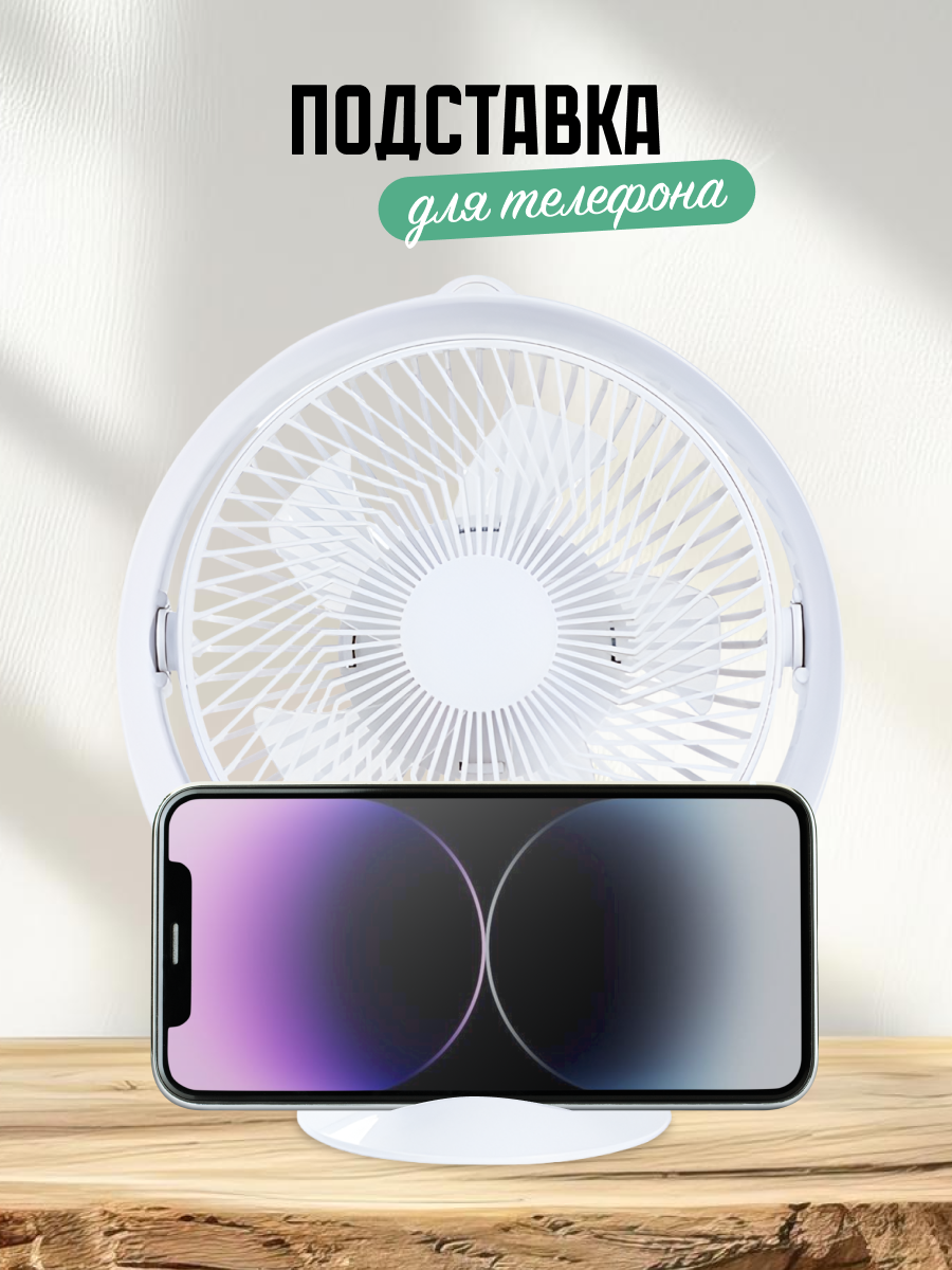 Вентилятор настольный ZDK HJ-5060-6, белый, 2 скорости с подставкой для телефона информация: