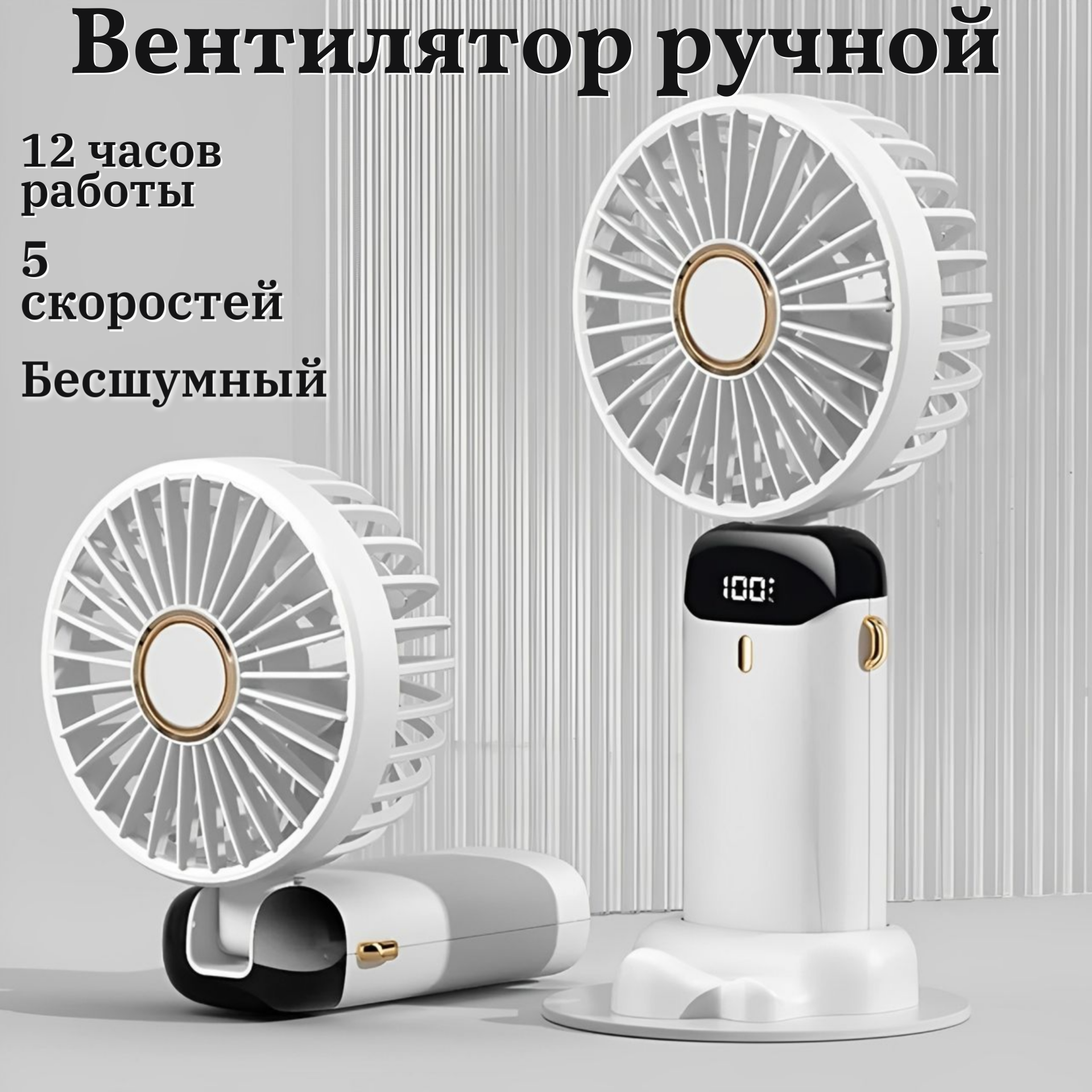 Вентилятор Power bank, складной, портативный, 5 скоростей работы, 3000 мАч, белый