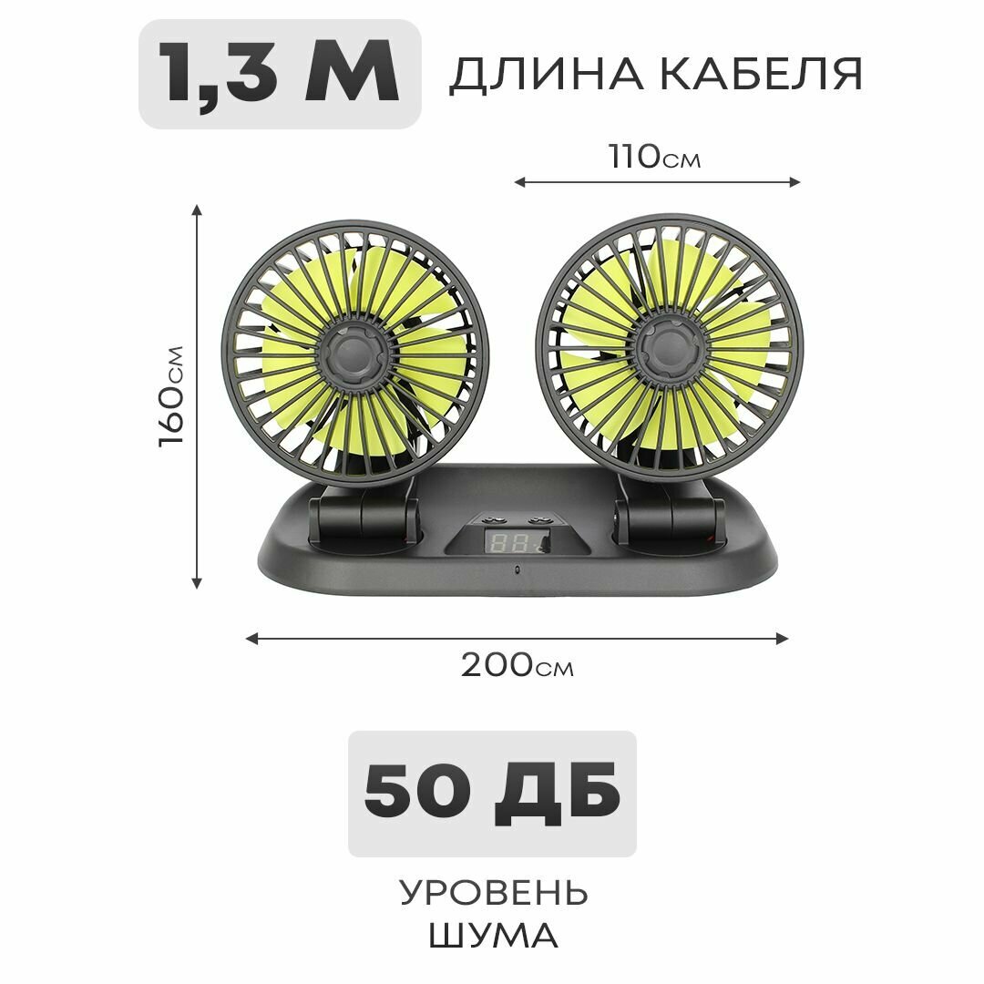 10 цен на Автовентилятор двойной d-105 мм от прикуривателя 12-24В, с USB разветвителем, термометром и автовизиткой