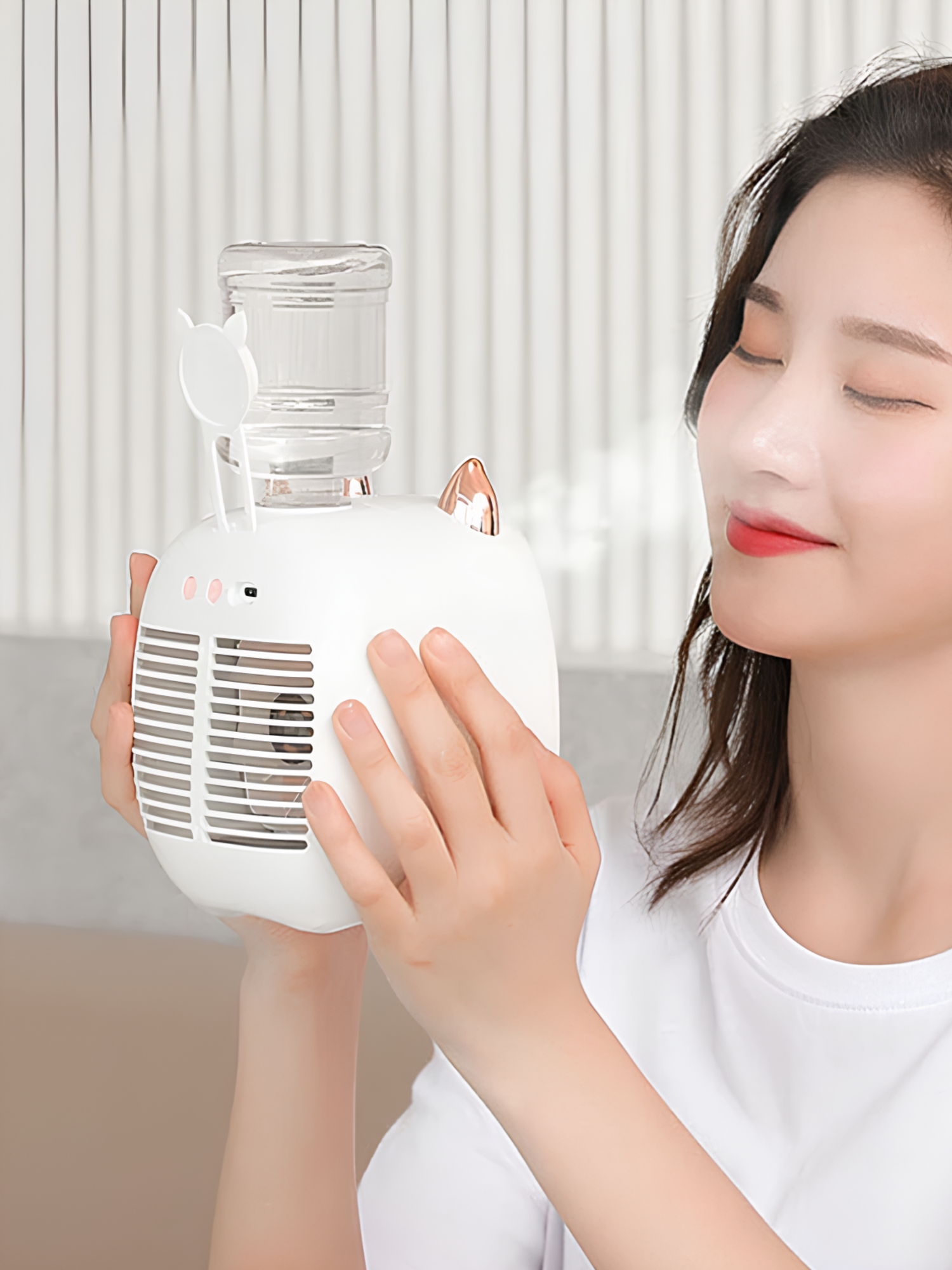 10 цен на Вентилятор портативный от аккумулятора "Котик", 3 режима скорости с увлажнителем воздуха, желтый