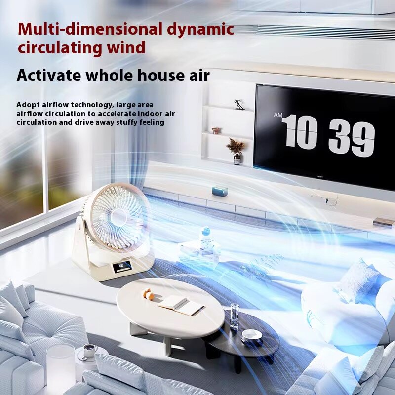 Вентилятор, настольный, портативный, аккумуляторный, с цифровым дисплеем, черный
