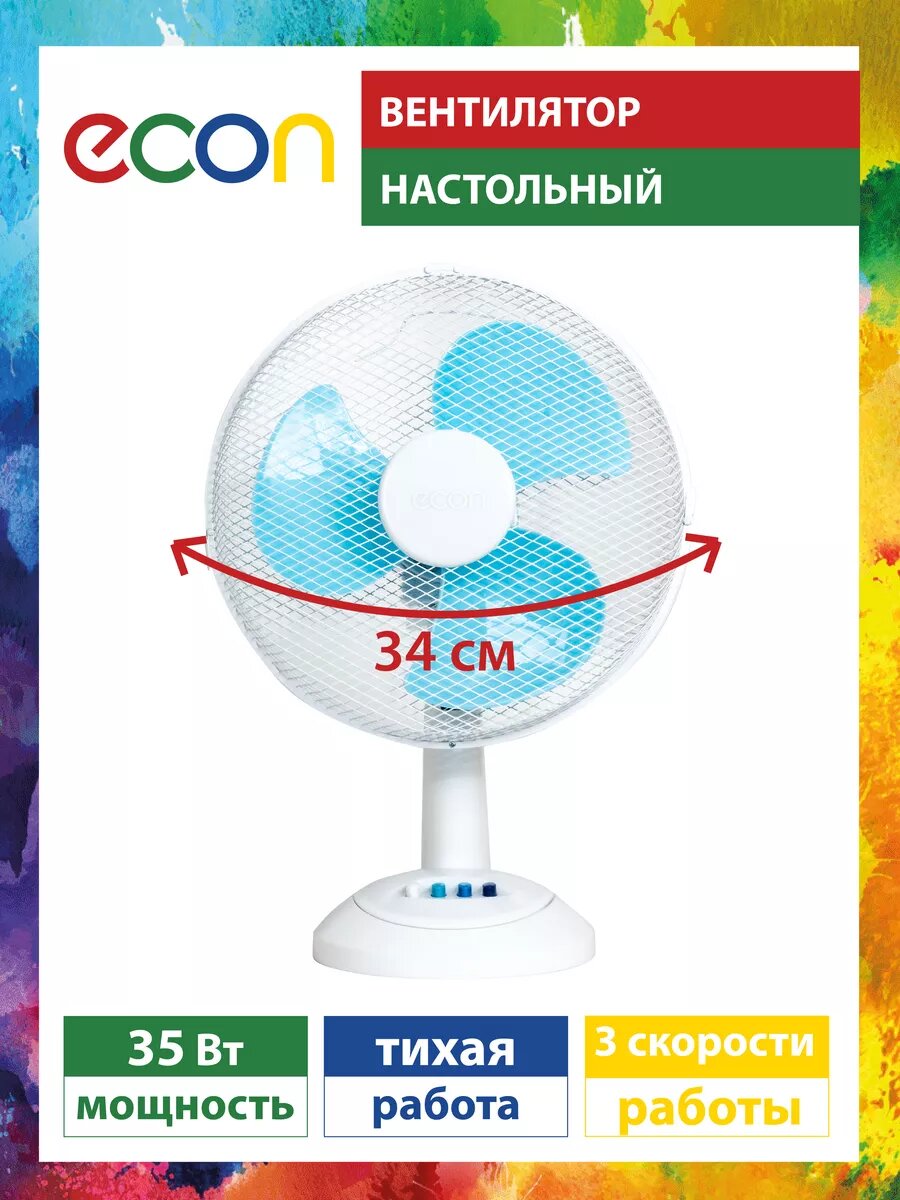 Отзывы на Вентилятор Econ ECO-TBF1201 blue, регулируемый наклон до 30 градусов, 3 скорости, режим осцилляции, 35 Вт