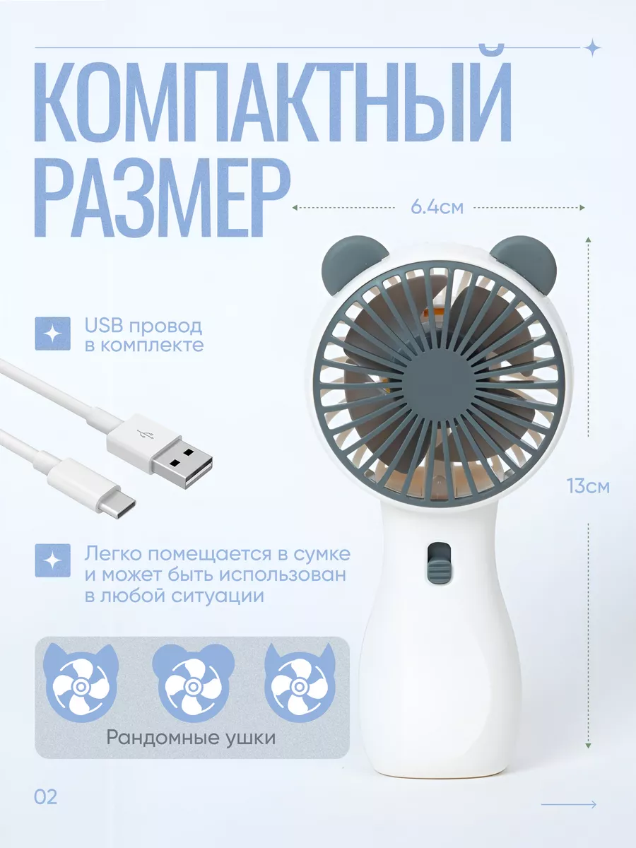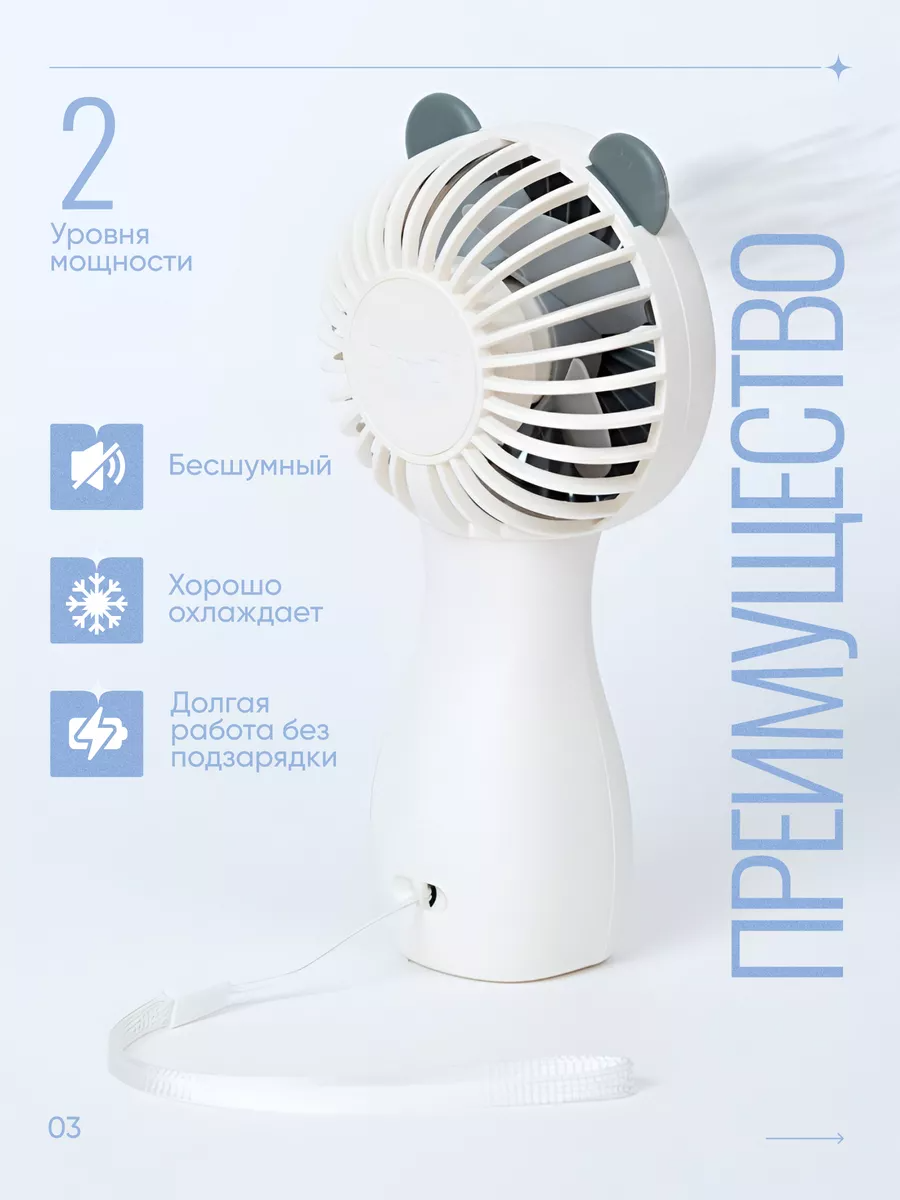 Отзывы на Портативный стильный компактный ручной вентилятор, 2 режима скорости, подсветка, белый цвет