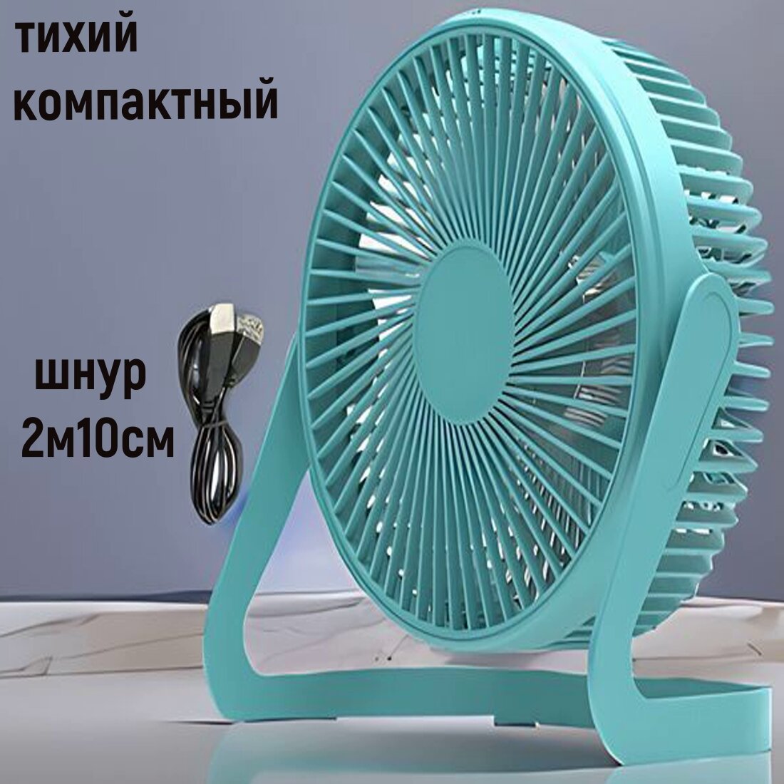 Настольный мини-вентилятор с USB-подключением, 12,7 см + доп. шнур 1.5 м. бирюзовый. информация: