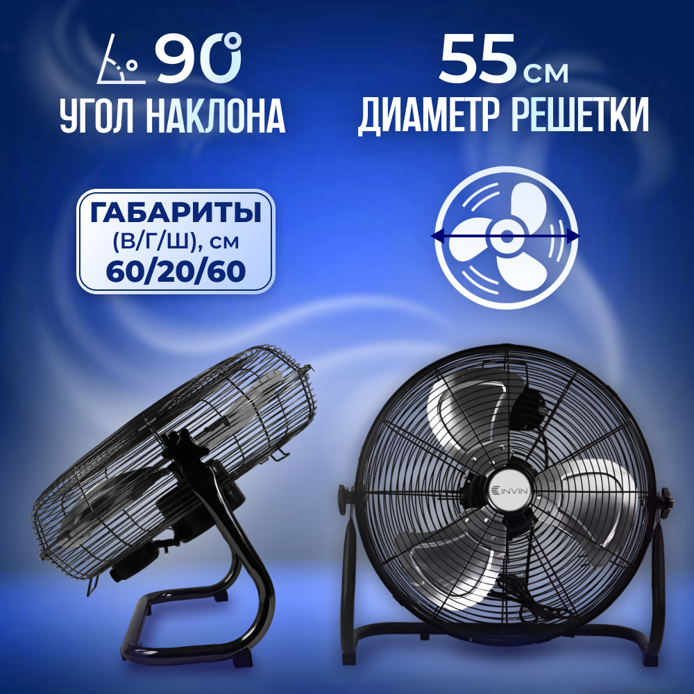 Вентилятор промышленный напольный диаметр 50см, 6000 куб. м. в час мощность 160Вт, Низкий уровень шума INVIN K20 информация: