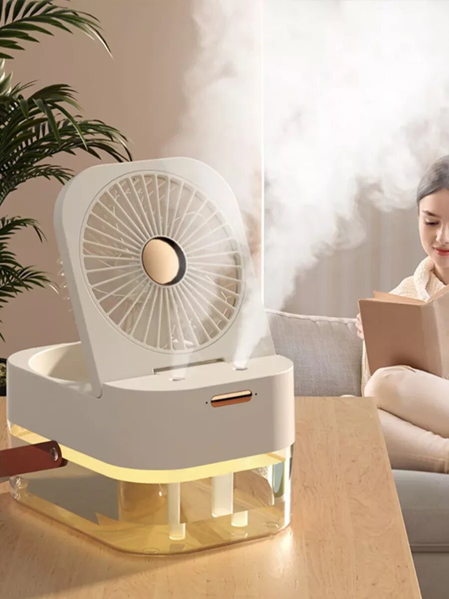 Вентилятор настольный с увлажнителем, мини кондиционер, бесшумный увлажнитель, белый