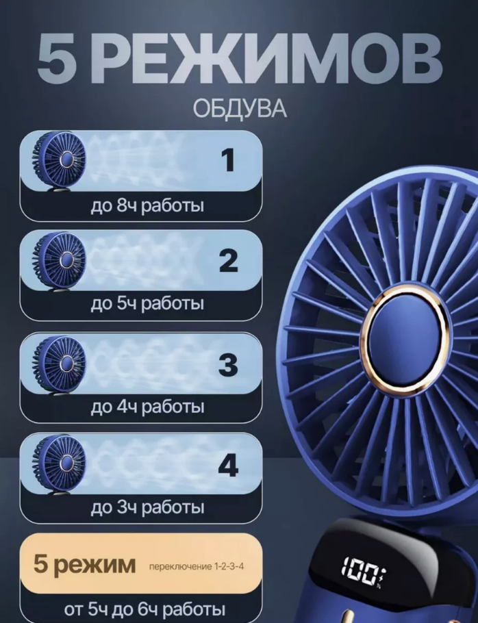 Отзывы на Портативный вентилятор OEM, USB, влагозащитный, 5 режимов, синий