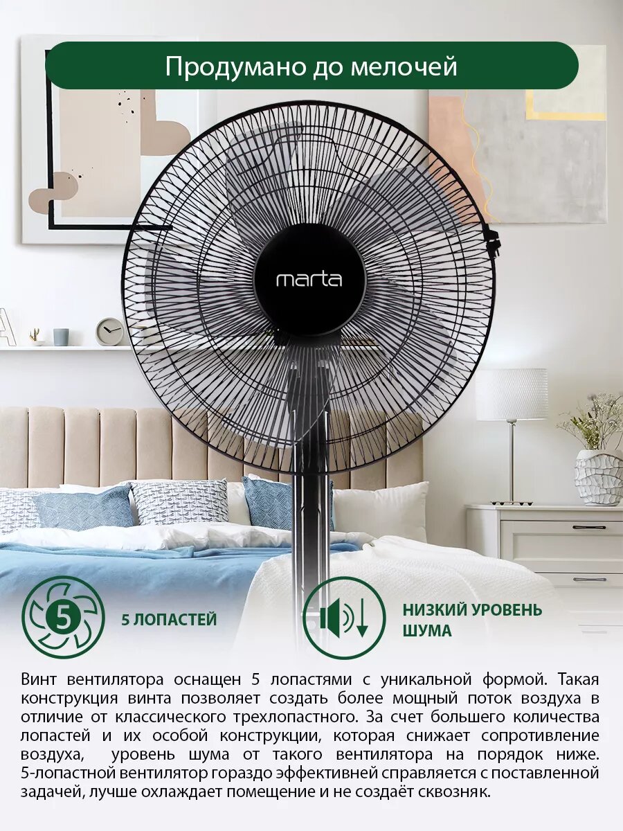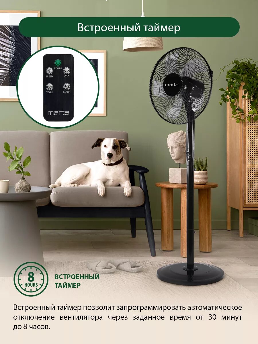 10 цен на Напольный вентилятор с пультом ДУ MARTA MT-FN2543 черный/серый