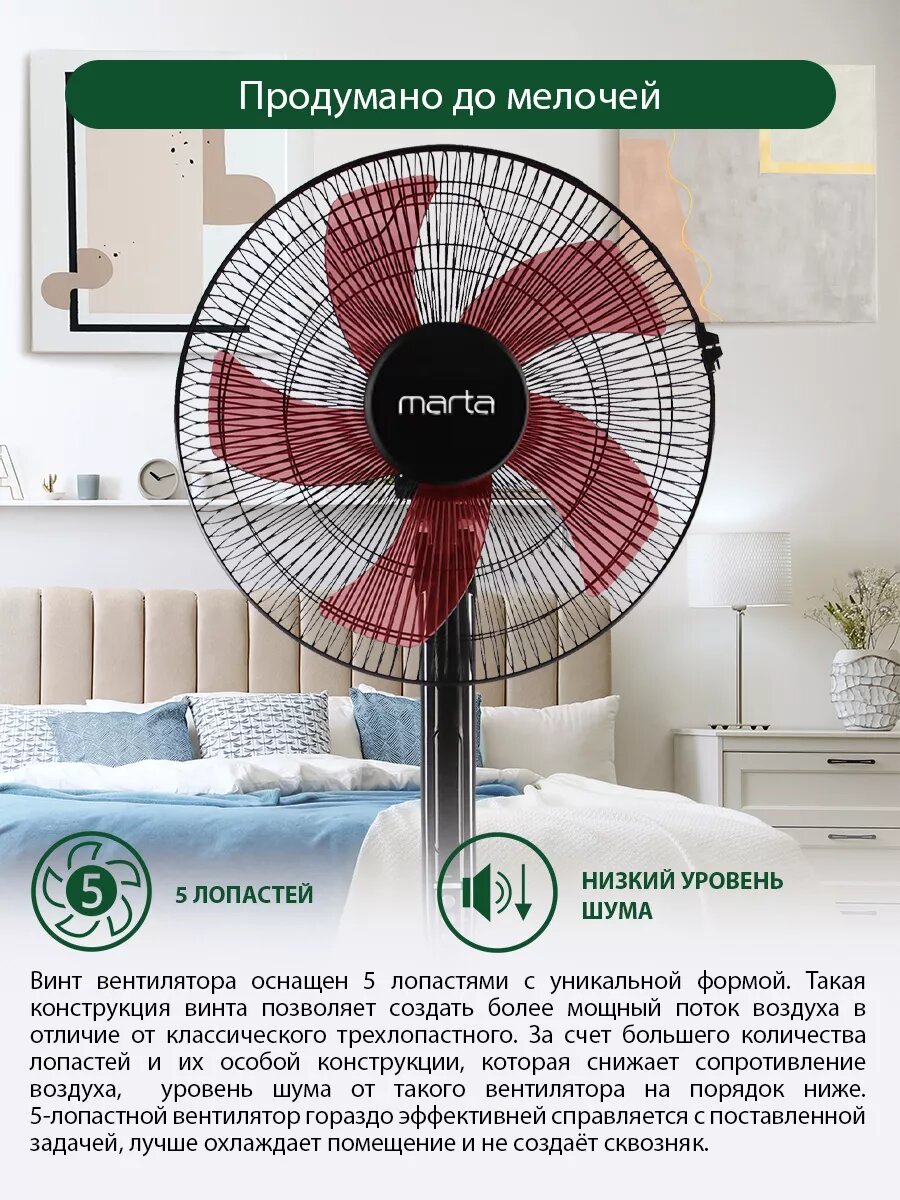 Отзывы на Напольный вентилятор с пультом ДУ MARTA MT-FN2543 черный/красный