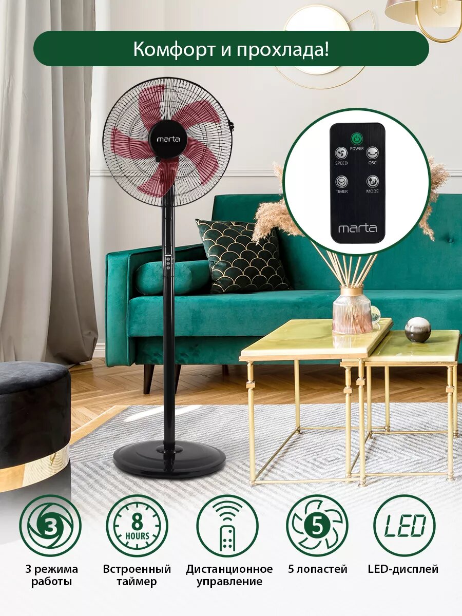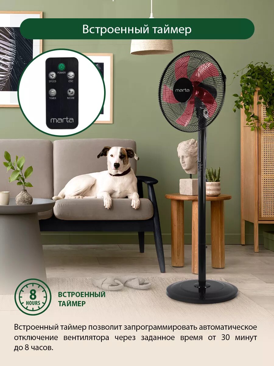 10 цен на Напольный вентилятор с пультом ДУ MARTA MT-FN2543 черный/красный