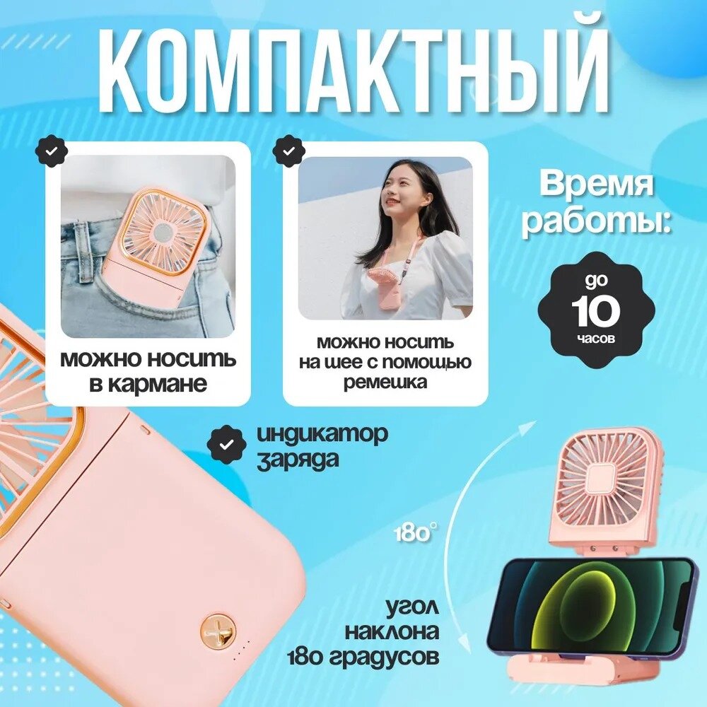 Отзывы на Портативный вентилятор на шею Мини-вентилятор складной, как подставка под телефон, повербанк