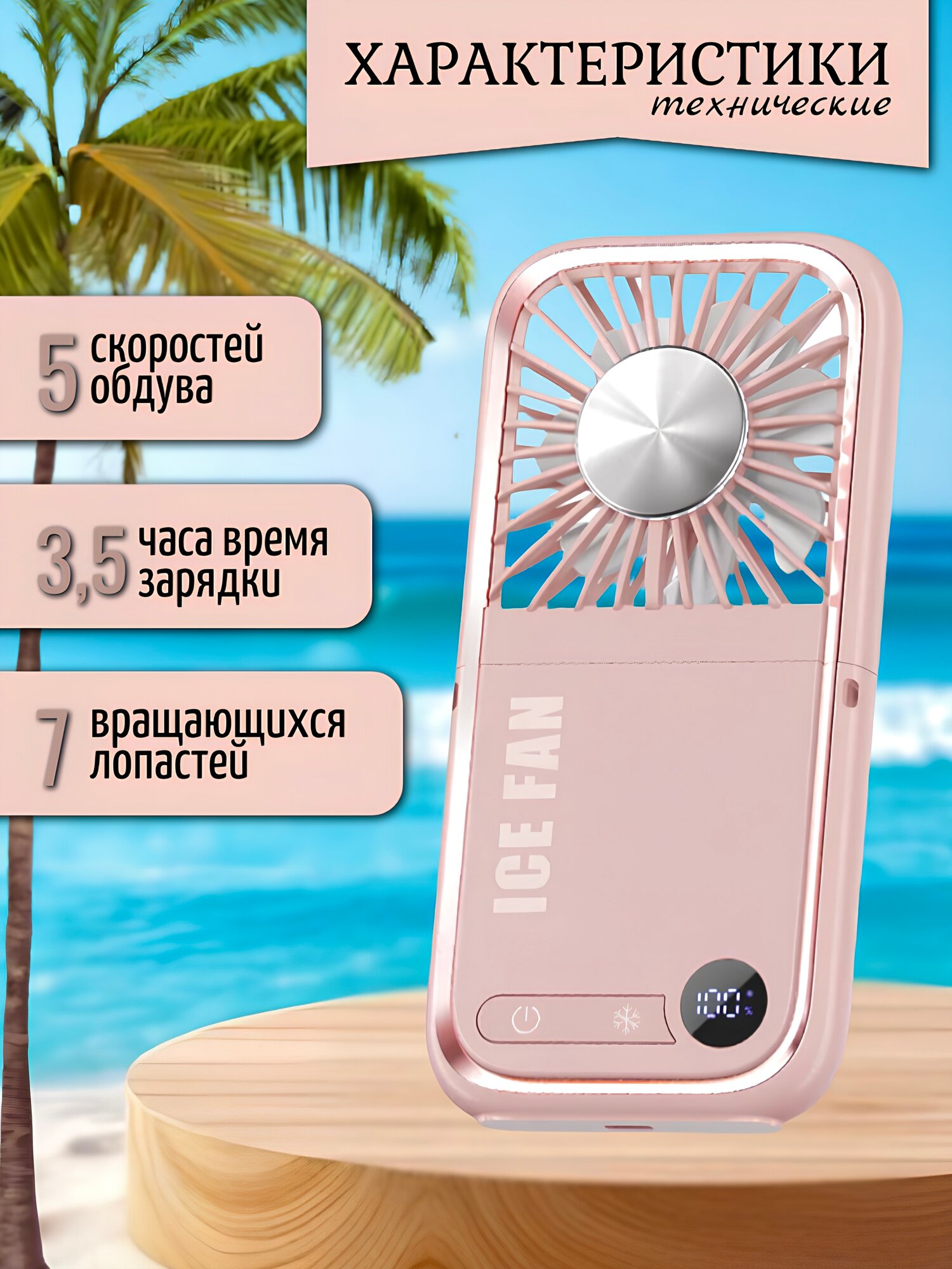 Отзывы на Мини вентилятор ручной портативный на аккумуляторе повербанк, розовый