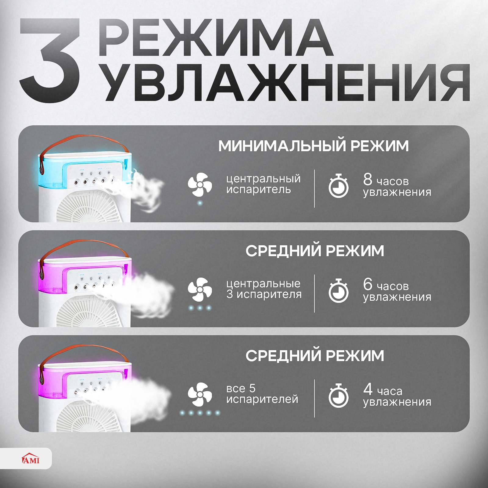 Вентилятор настольный Winter с подсветкой, портативный увлажнитель, бесшумный мини кондиционер от USB, белый, Ами Мебель информация: