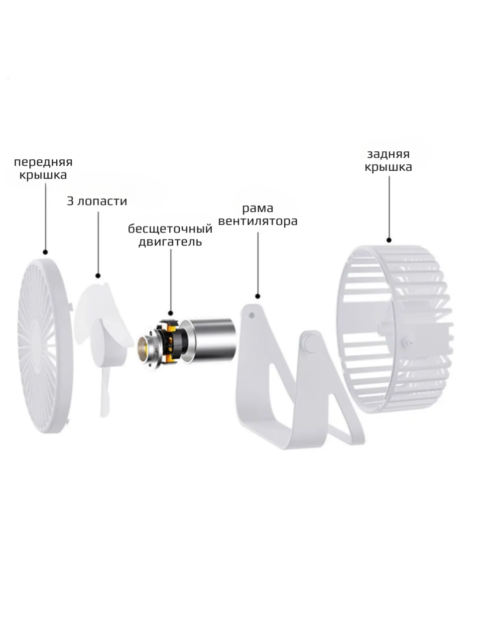 Вентилятор Power bank, складной, портативный, 5 скоростей работы, 3000 мАч, белый