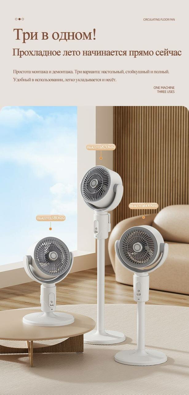Отзывы на Вентилятор 3 в 1, с пультом, белый, 5 режимов, таймер, циркуляционный