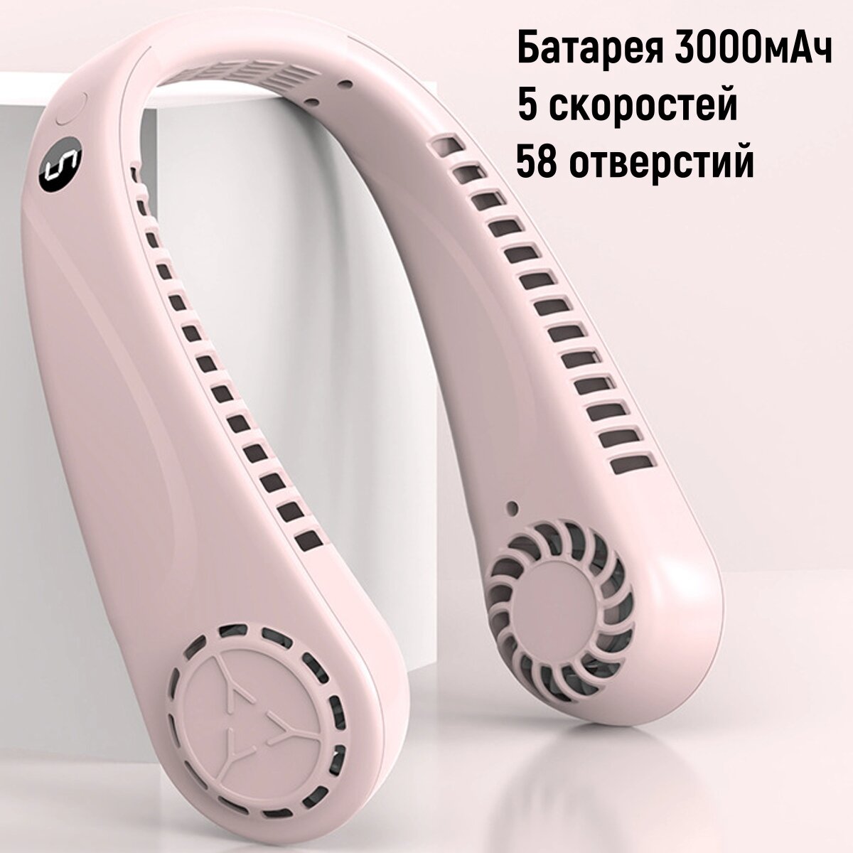 Подвесной розовый вентилятор с аккумулятором 3000 mAh и 5 скоростями информация: