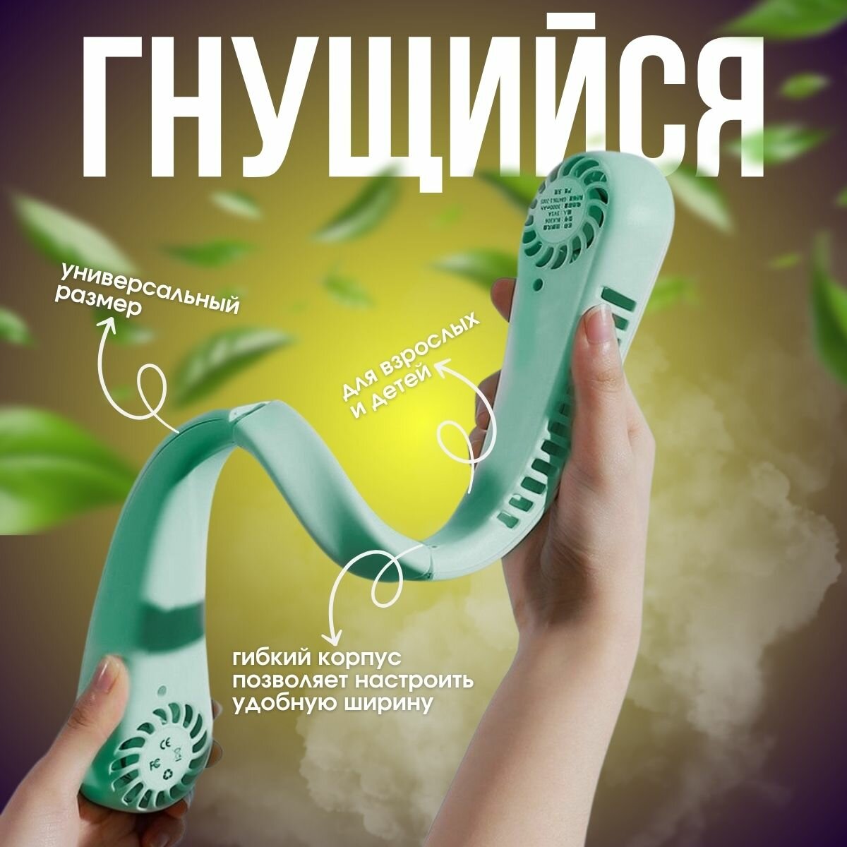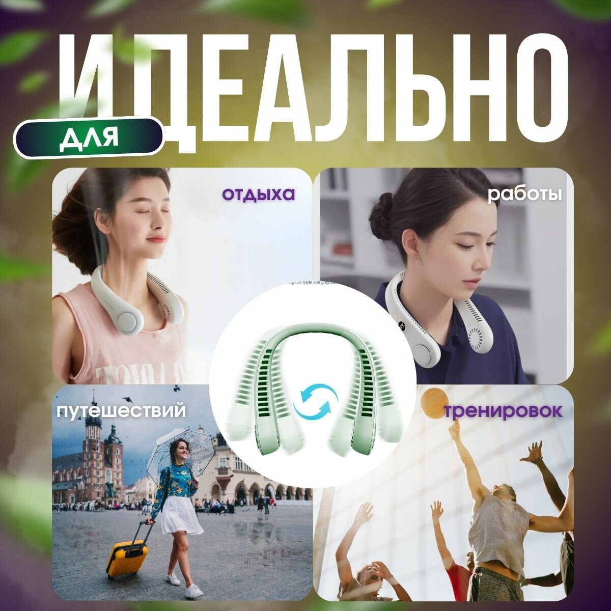 Подвесной зеленый вентилятор с аккумулятором 3000 mAh и 5 скоростями информация:
