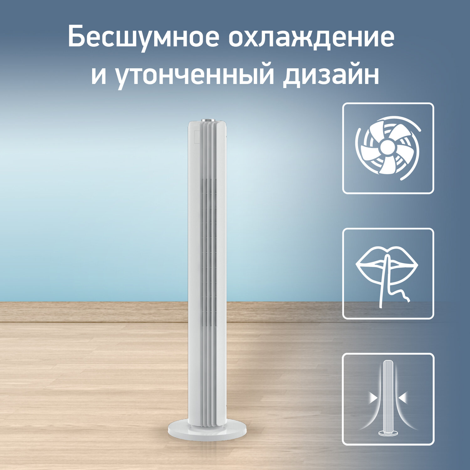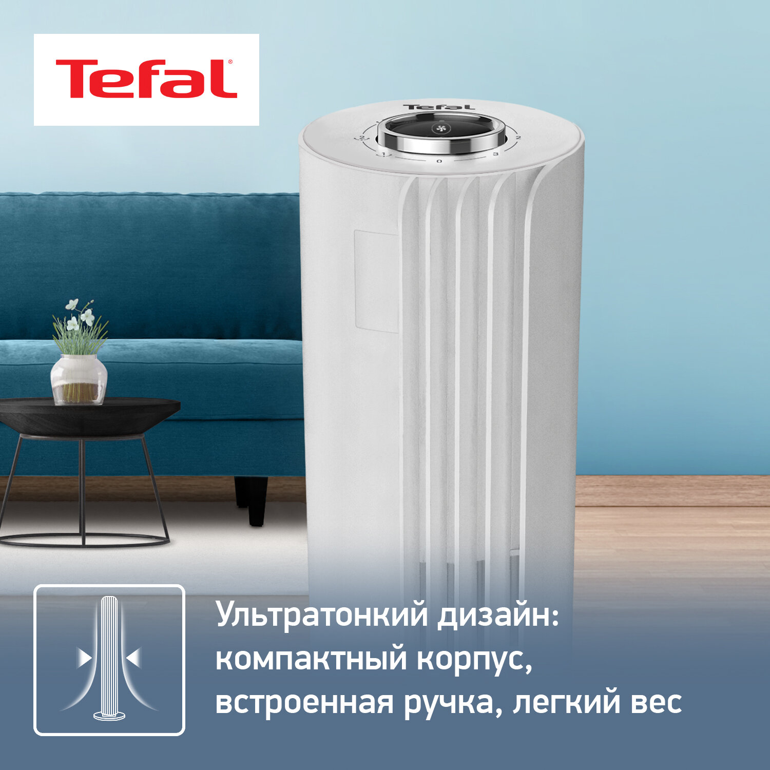 Вентилятор напольный колонный Tefal Eole Ultra VF6871F0, с пультом управления, таймером, 3 скоростями, белый
