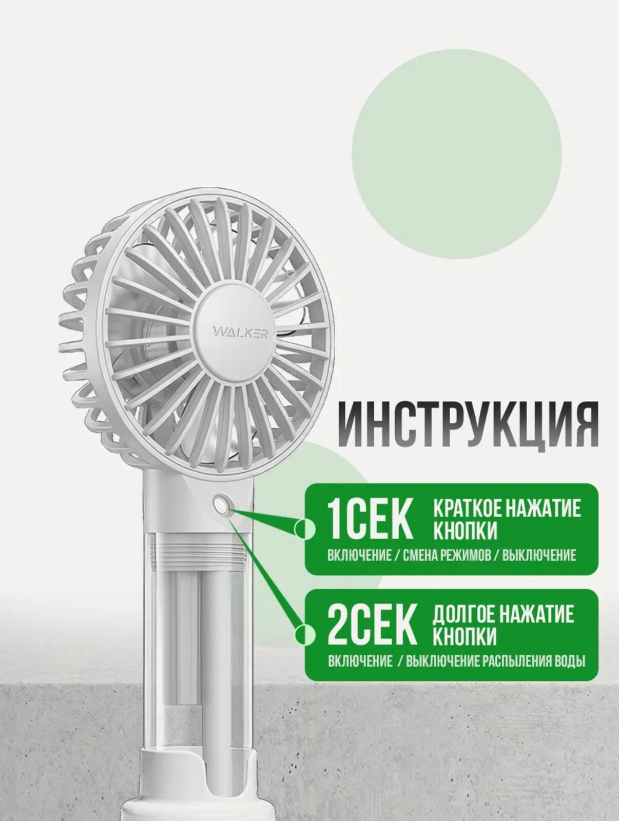 Мини вентилятор настольный с распылителем воды WALKER, портативный, ручной, с увлажнителем и с охлаждением, как xiaomi, Белый информация: