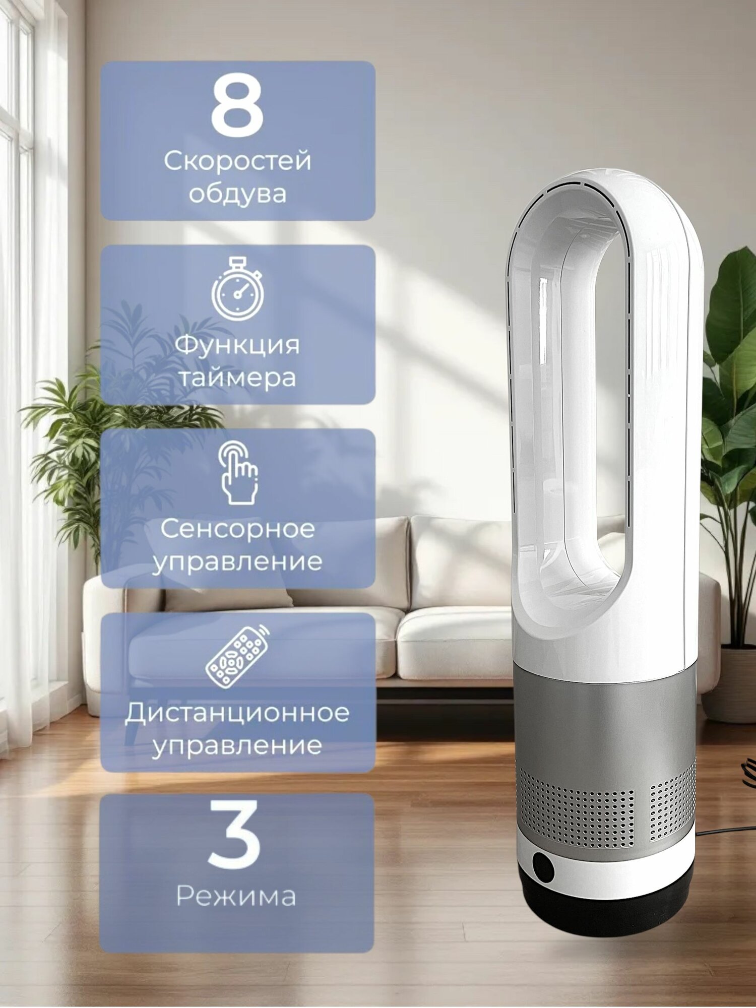 Отзывы на Вентилятор напольный MODENGO, безлопастной, 50Вт, 8 скоростей, сенсорное управление, белый