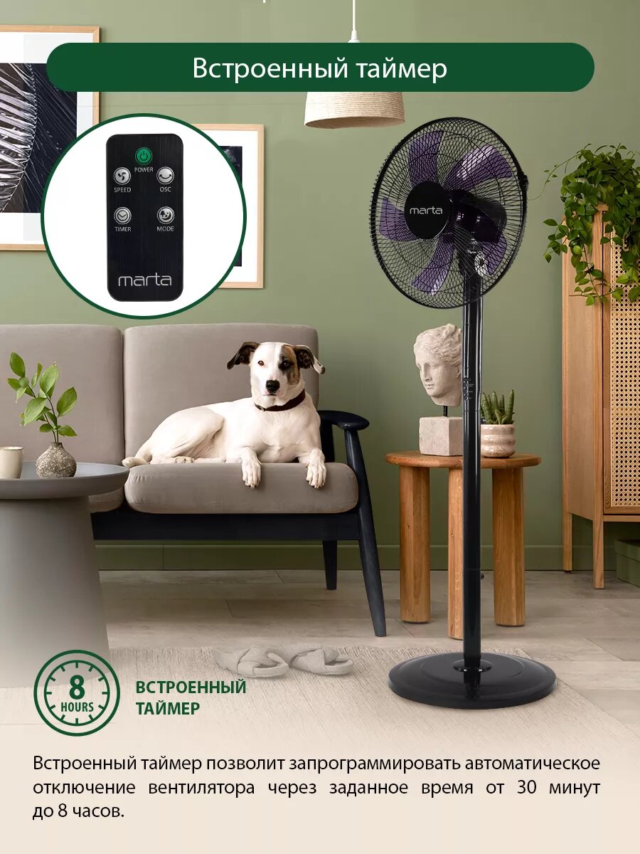10 цен на Напольный вентилятор с пультом ДУ MARTA MT-FN2543 черный/синий