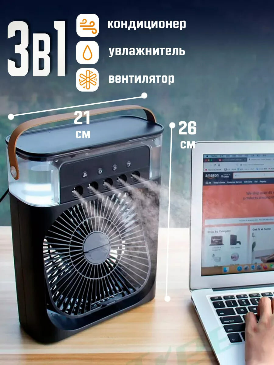 Мини вентилятор чёрный / Кондиционер / Увлажнитель настольный портативный от Shark-Shop информация: