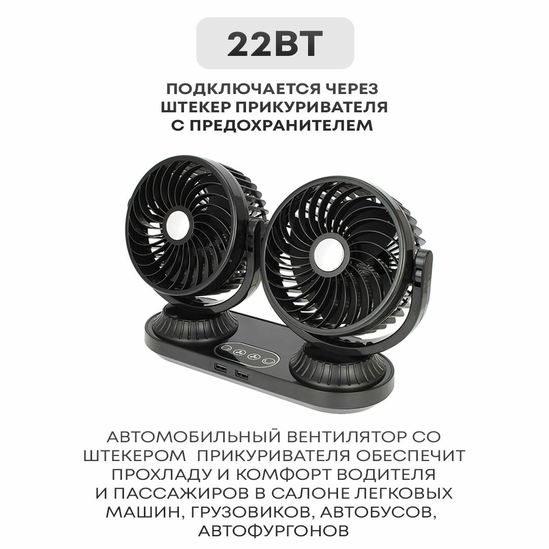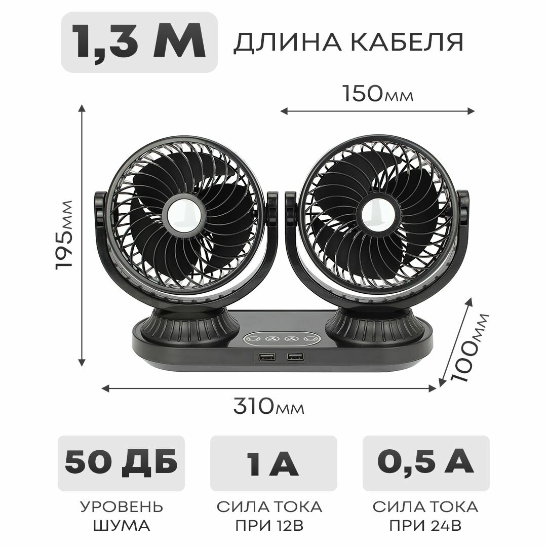 Автовентилятор двойной d-150 мм, автомобильный вентилятор от прикуривателя 12-24В, с USB разветвителем информация: