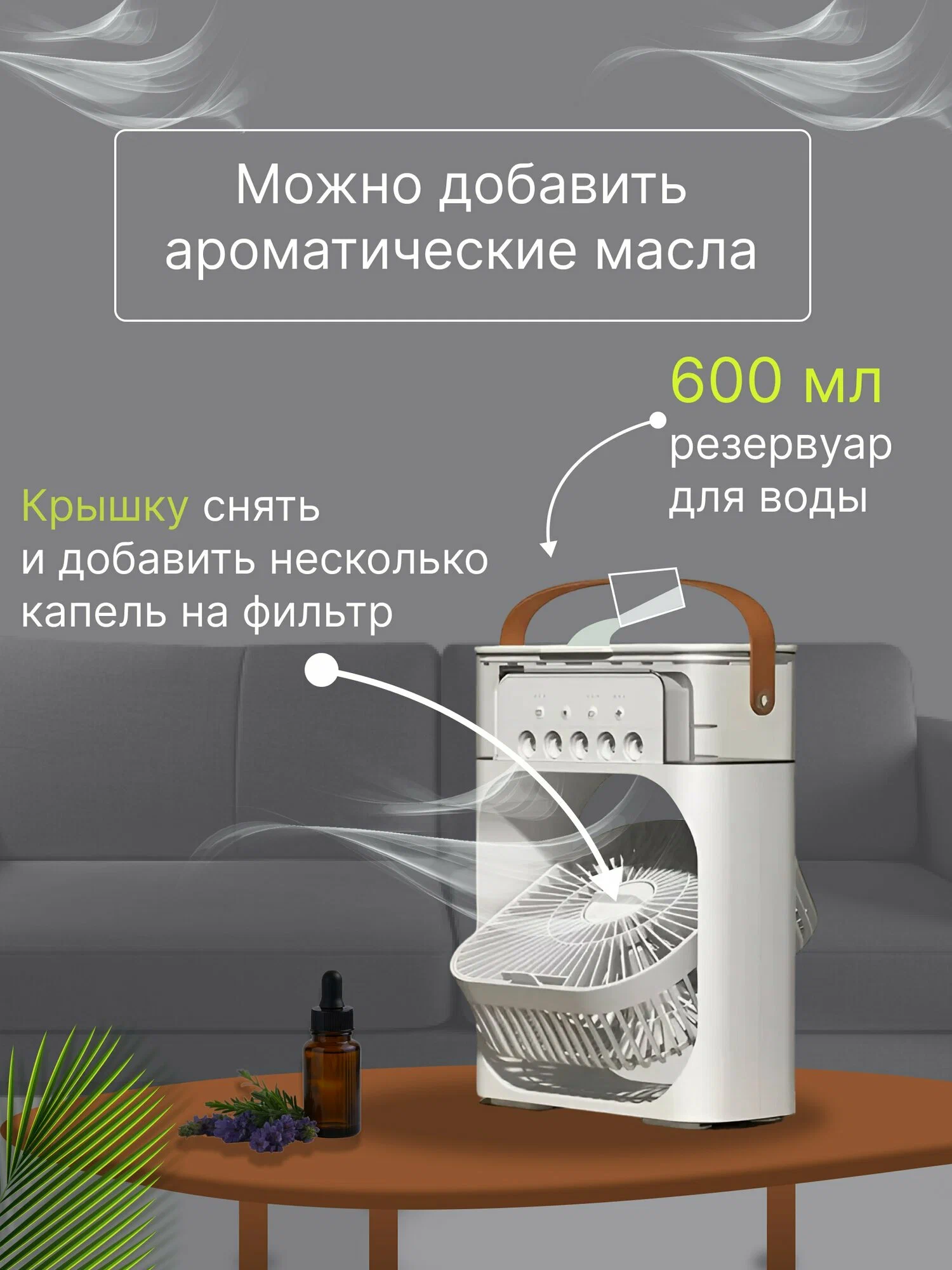 Вентилятор настольный с увлажнителем, мини кондиционер, бесшумный увлажнитель, белый