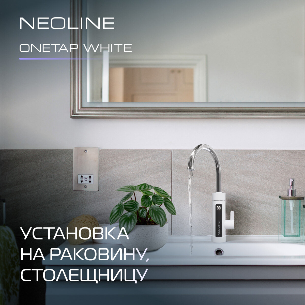 Водонагреватель NEOLINE "OneTap" White, проточный, электрический, белый, защита от перегрева информация: