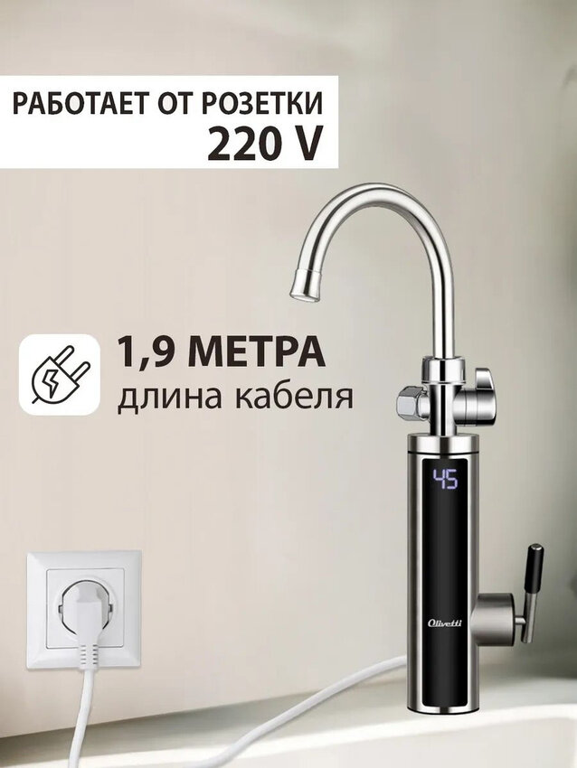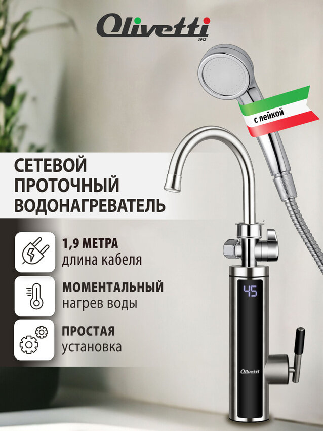 Отзывы на Водонагреватель проточный 2 в 1 с краном и лейкой OLIVETTI OL-WH4057SS, регулировка температуры, дисплей