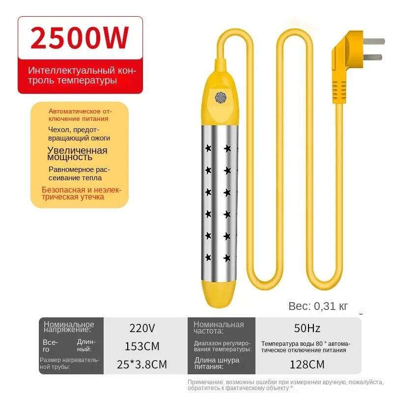 Кипятильник электрический погружной/ кипятильник для кружки, для ведра/ нагреватель воды погружной 2500Вт информация: