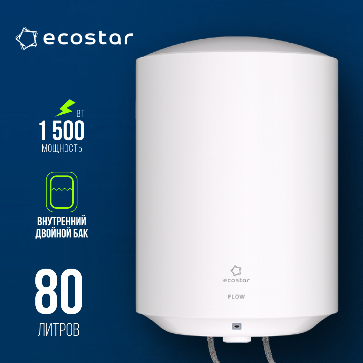 Отзывы на Водонагреватель электрический накопительный EcoStar серии FLOW, EWH-F80-RE, белый