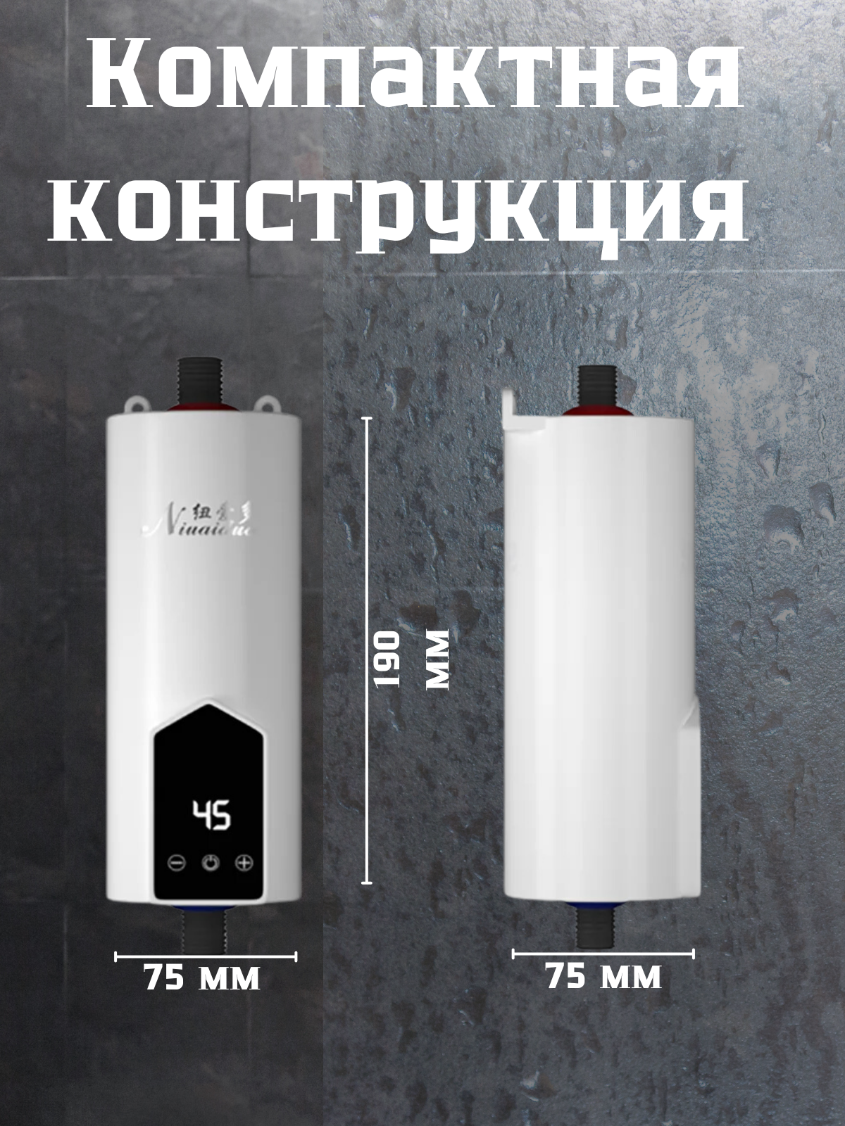 Проточный водонагреватель настенный электрический с душевой лейкой и дисплеем.