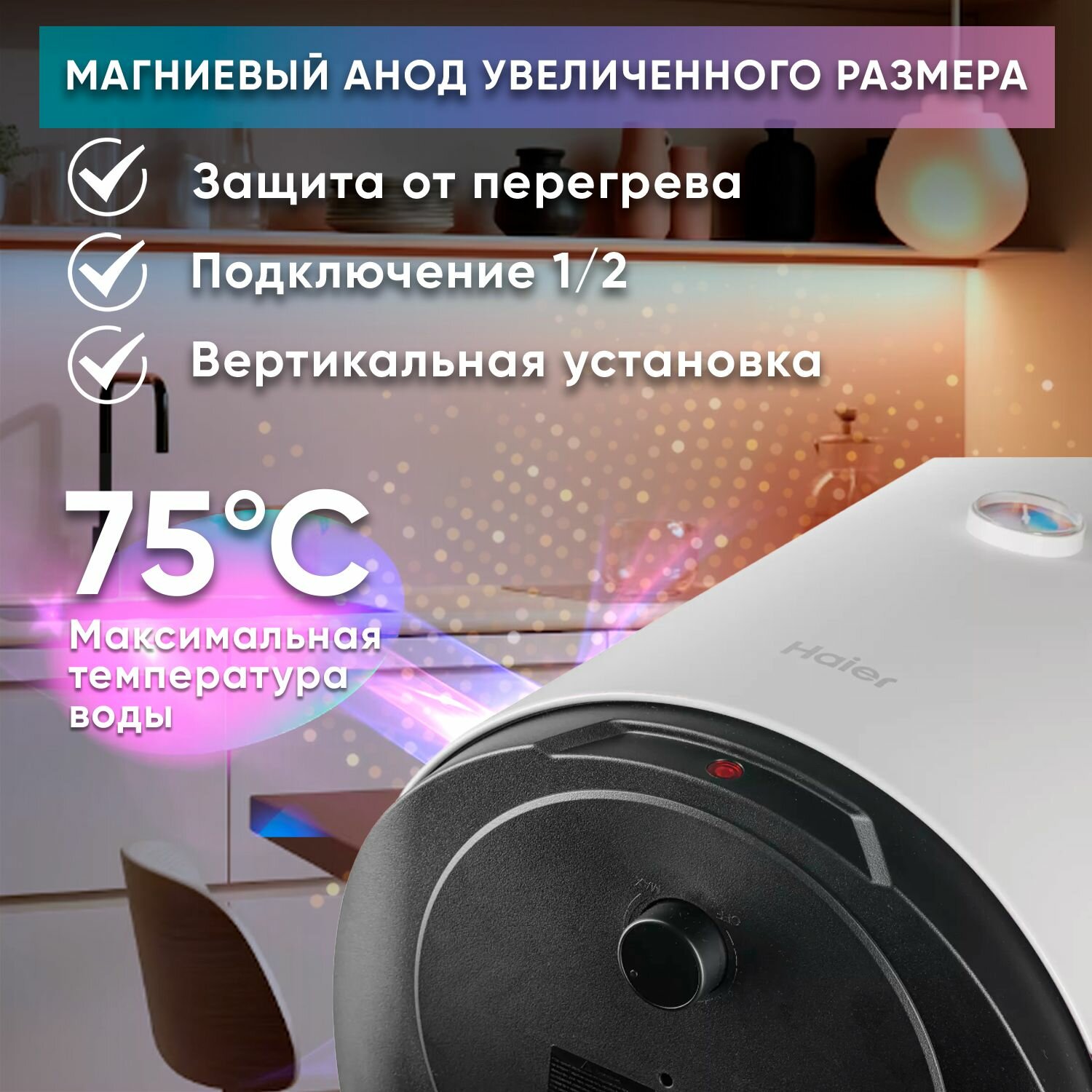 Водонагреватель накопительный Haier ES30V-C1, 30 литров, электрический, настенный, с термометром информация: