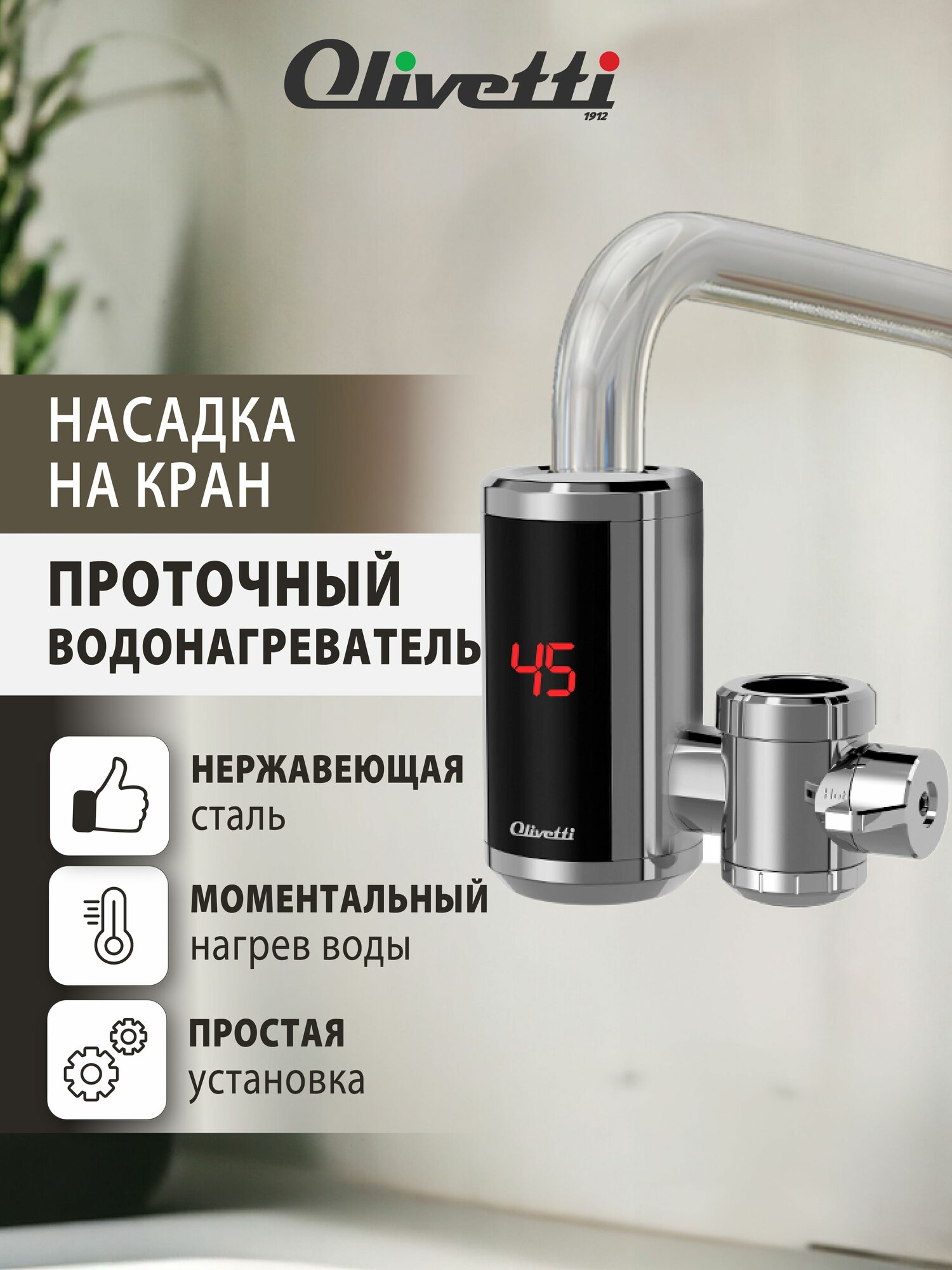 10 цен на Водонагреватель проточный электрический OLIVETTI OL-WH4050SS дисплей, регулировка температуры 30-60°, быстрый нагрев