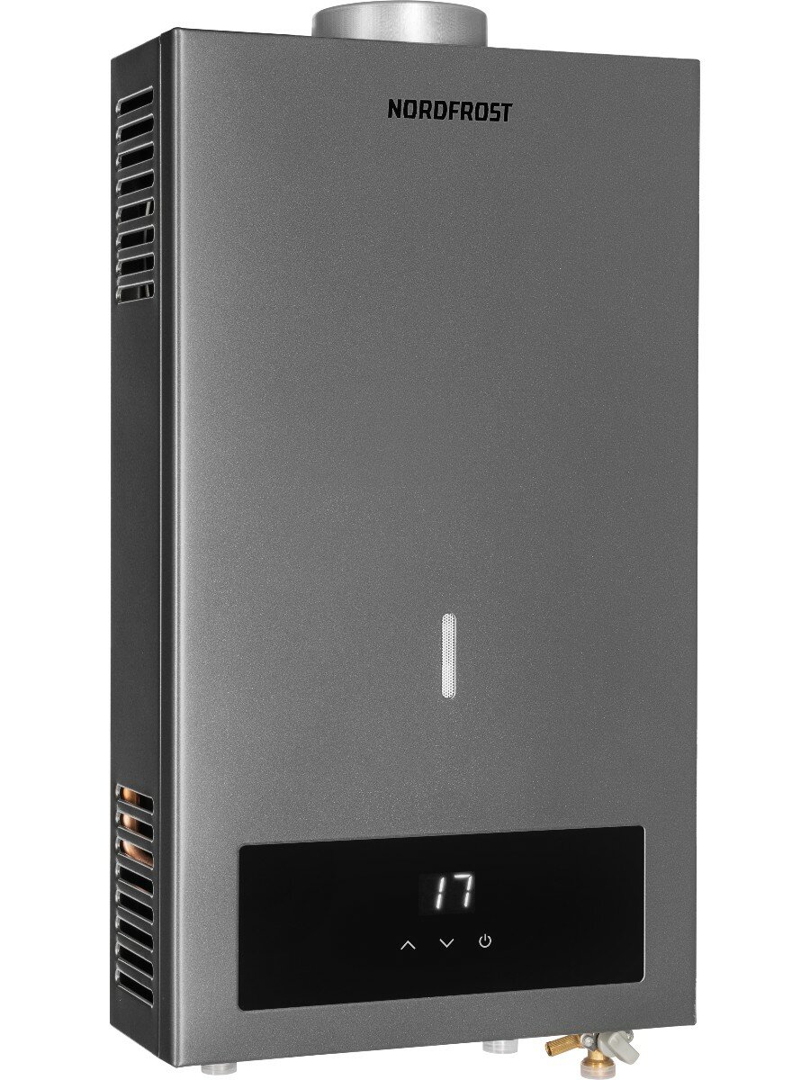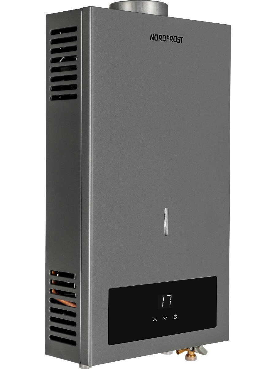 10 цен на Водонагреватель газовый проточный NORDFROST GFC 100 XD с авторозжигом/колонка на 10 л/20 кВт, дымоход 110мм, темно-серый